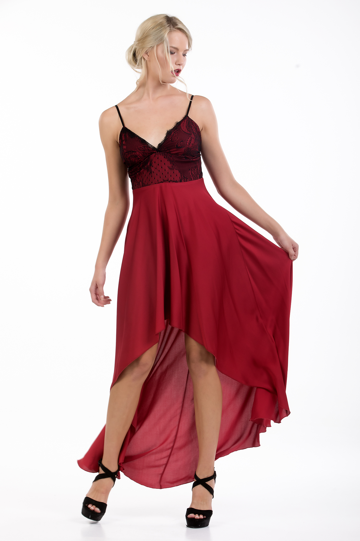 Βραδινό φόρεμα με μαύρη δαντέλα στο μπούστο