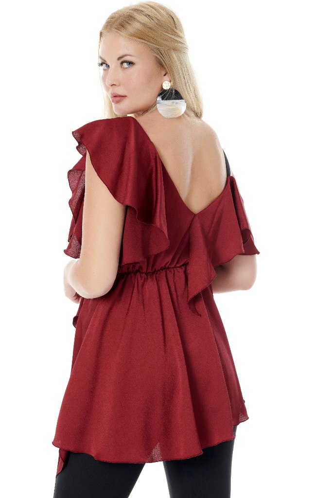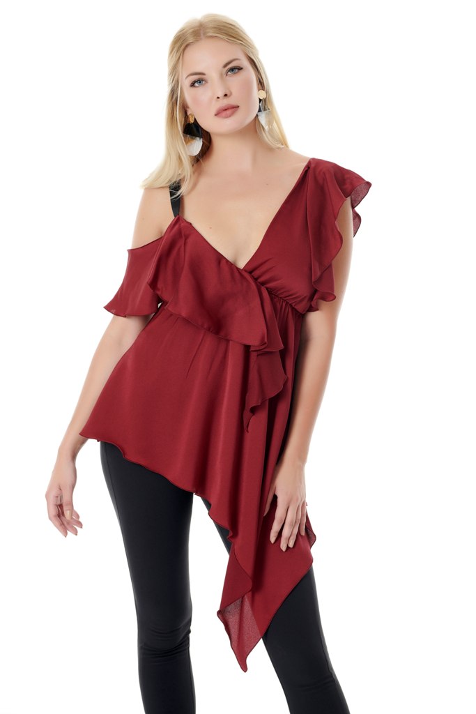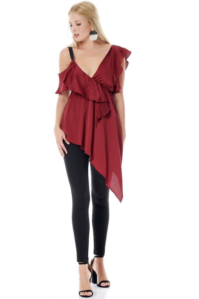 Ασύμμετρη μπλούζα με βολάν & τιράντα