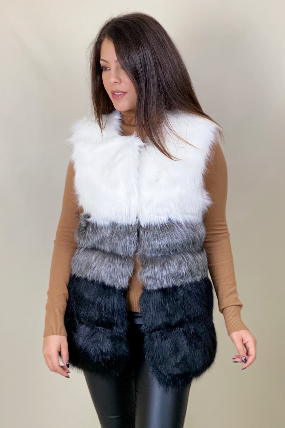 Γιλέκο γούνας τρίχρωμο
