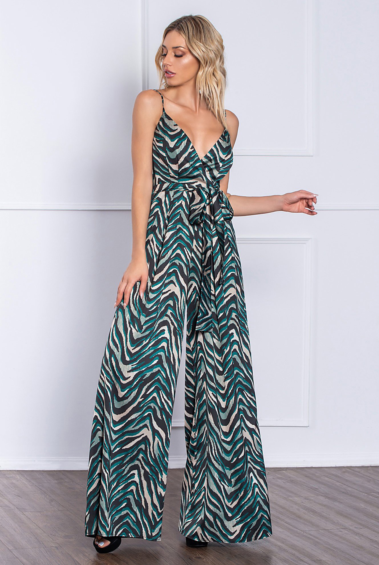 Home Shop By Occasions Εμπριμέ μπέζ σατέν ολόσωμη φόρμα