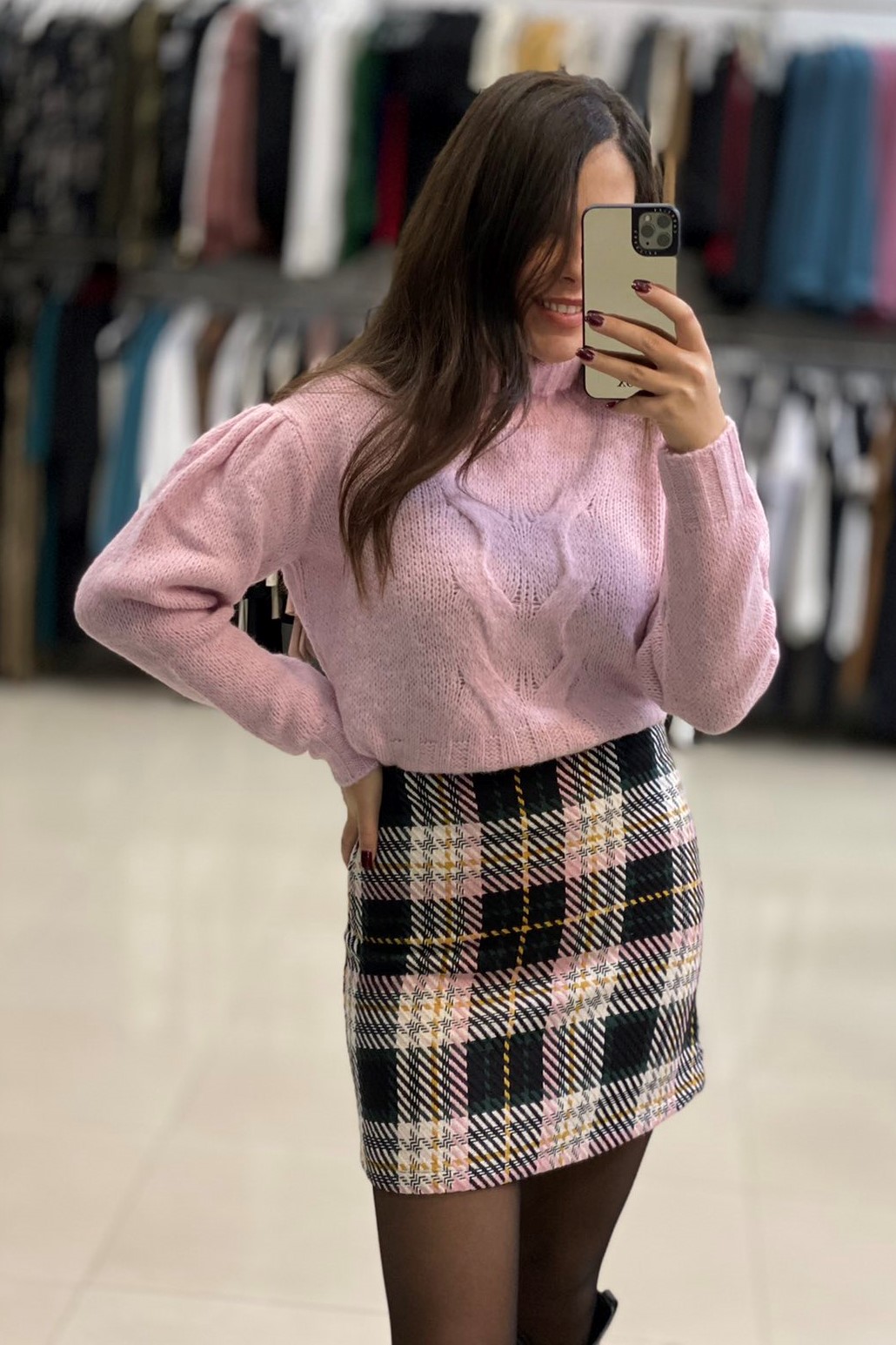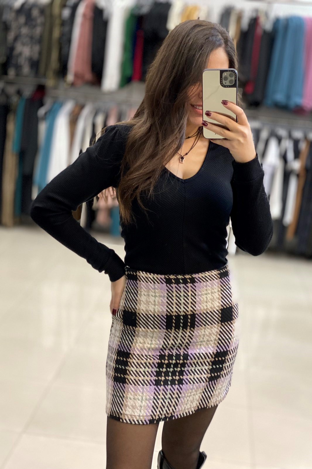 Εμπριμέ καρό φούστα.