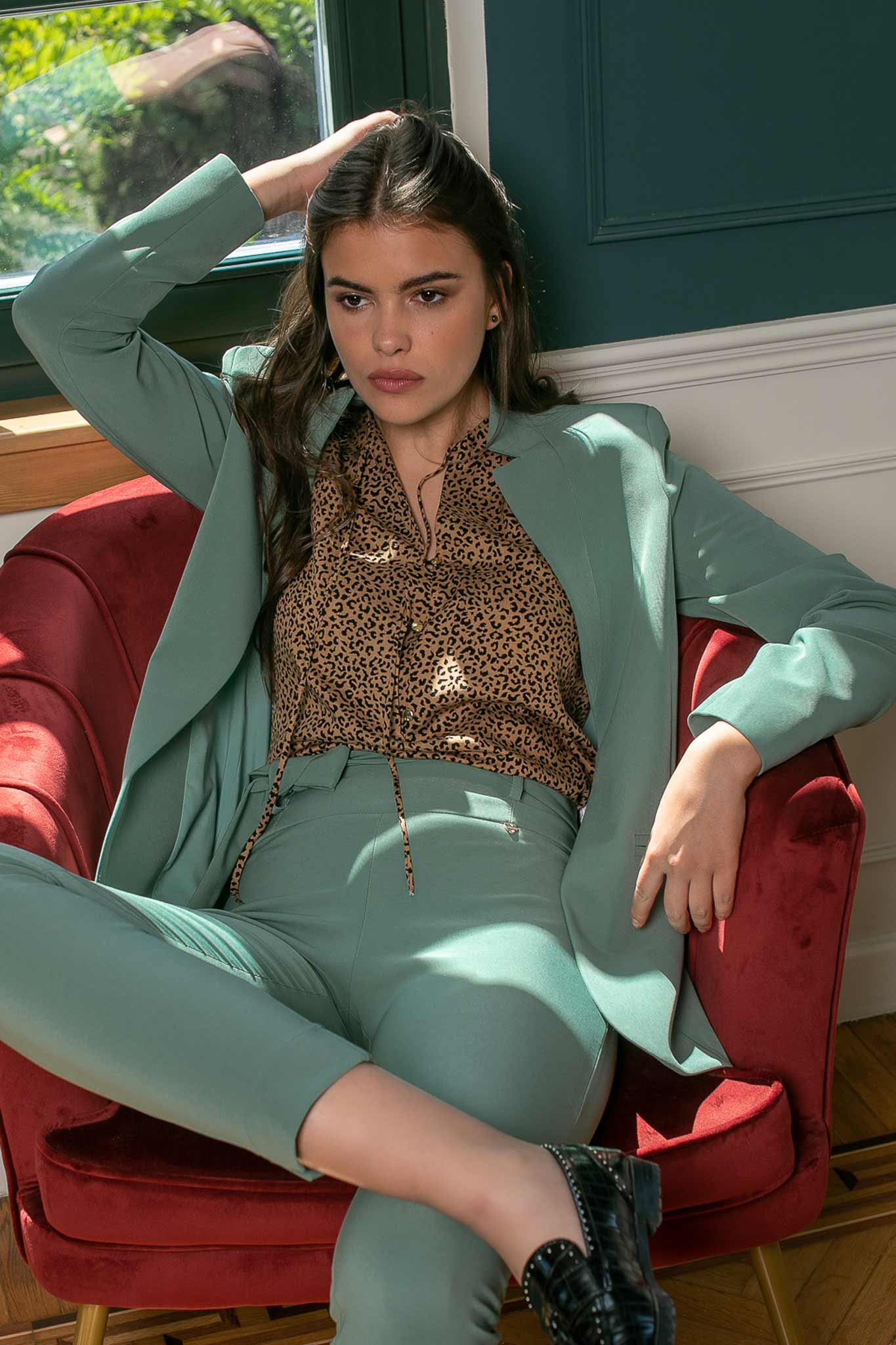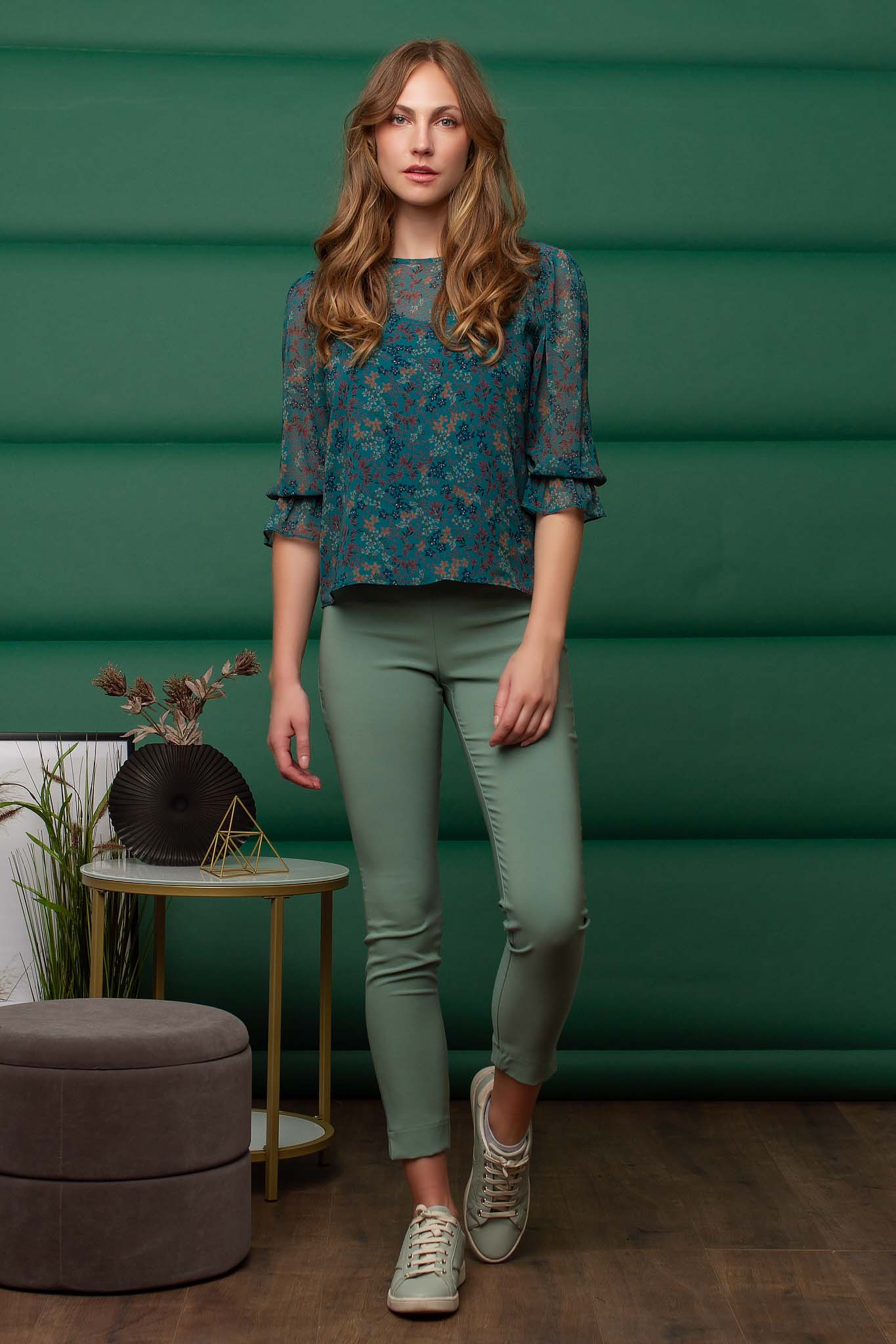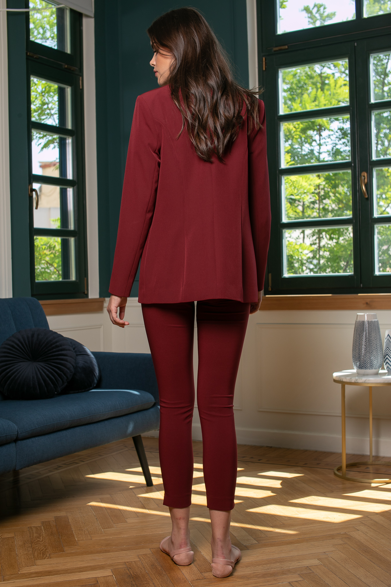 Ελαστικό κρεπ ύφασμα. Στενή εφαρμογή με άνετη κίνηση.