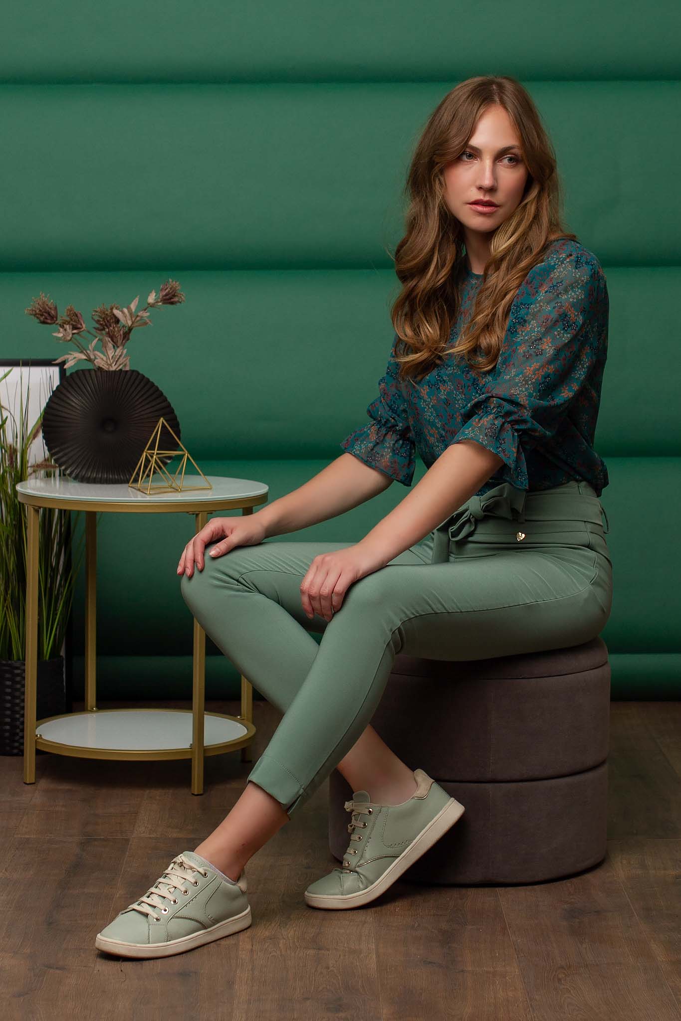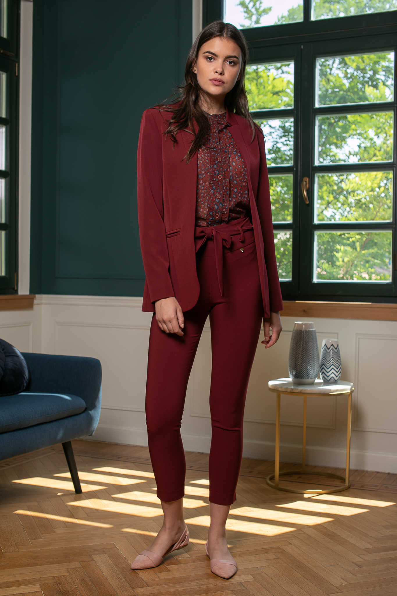 Ψηλόμεσο με ζώνη στην μέση. Κλείνει με φερμουάρ.
