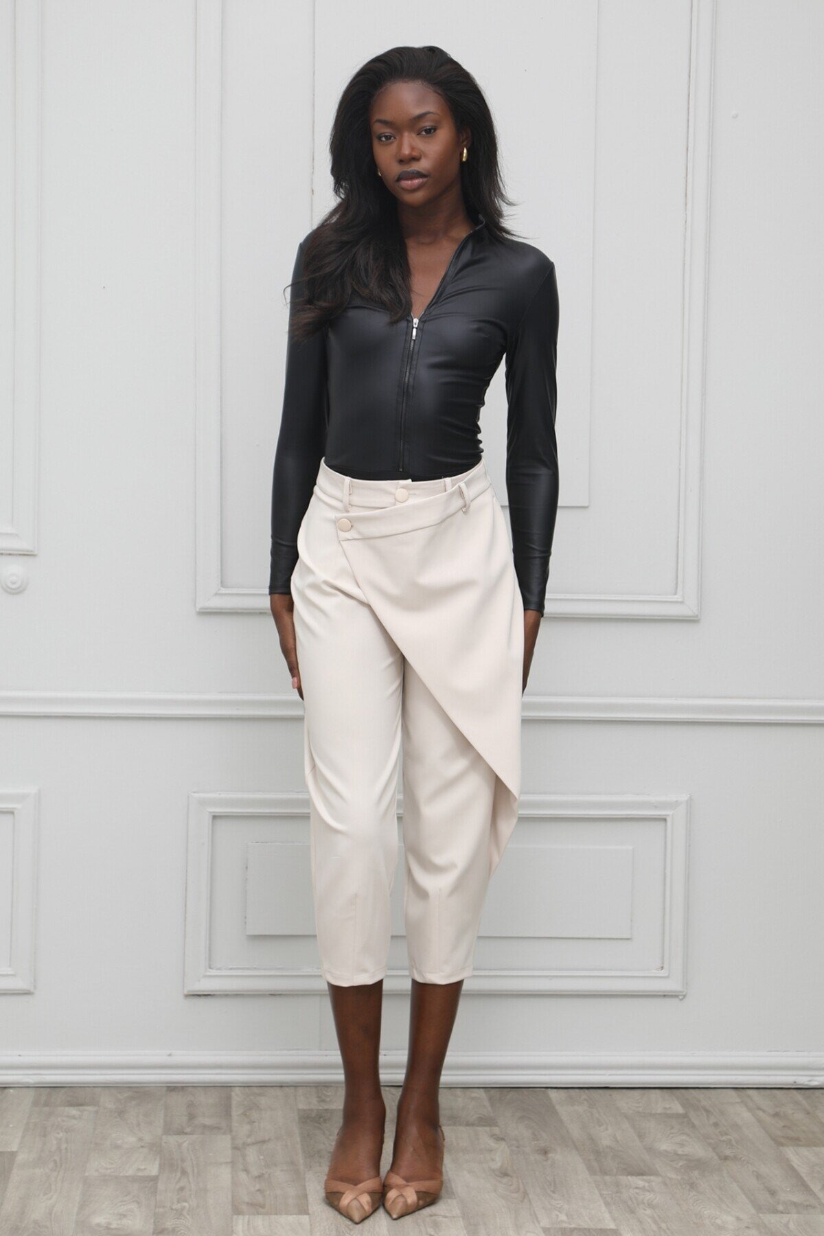 ​Κορμάκι δερματίνη με φερμουάρ στο μπροστινό μέρος
