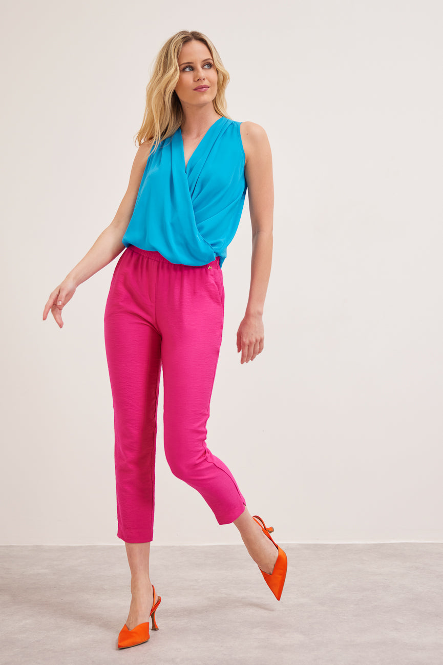 Παντελόνι τύπου σαλβάρι. Σταθερό ύφασμα, βισκόζη. Τύπου γάζα.