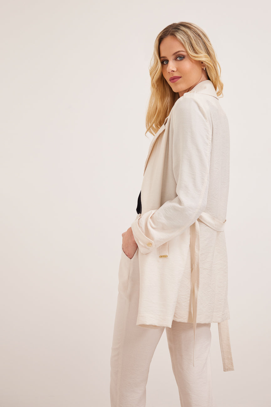 Σακάκι μακρύ ίσιο. Σταθερό ύφασμα, βισκόζη. Τύπου γάζα.