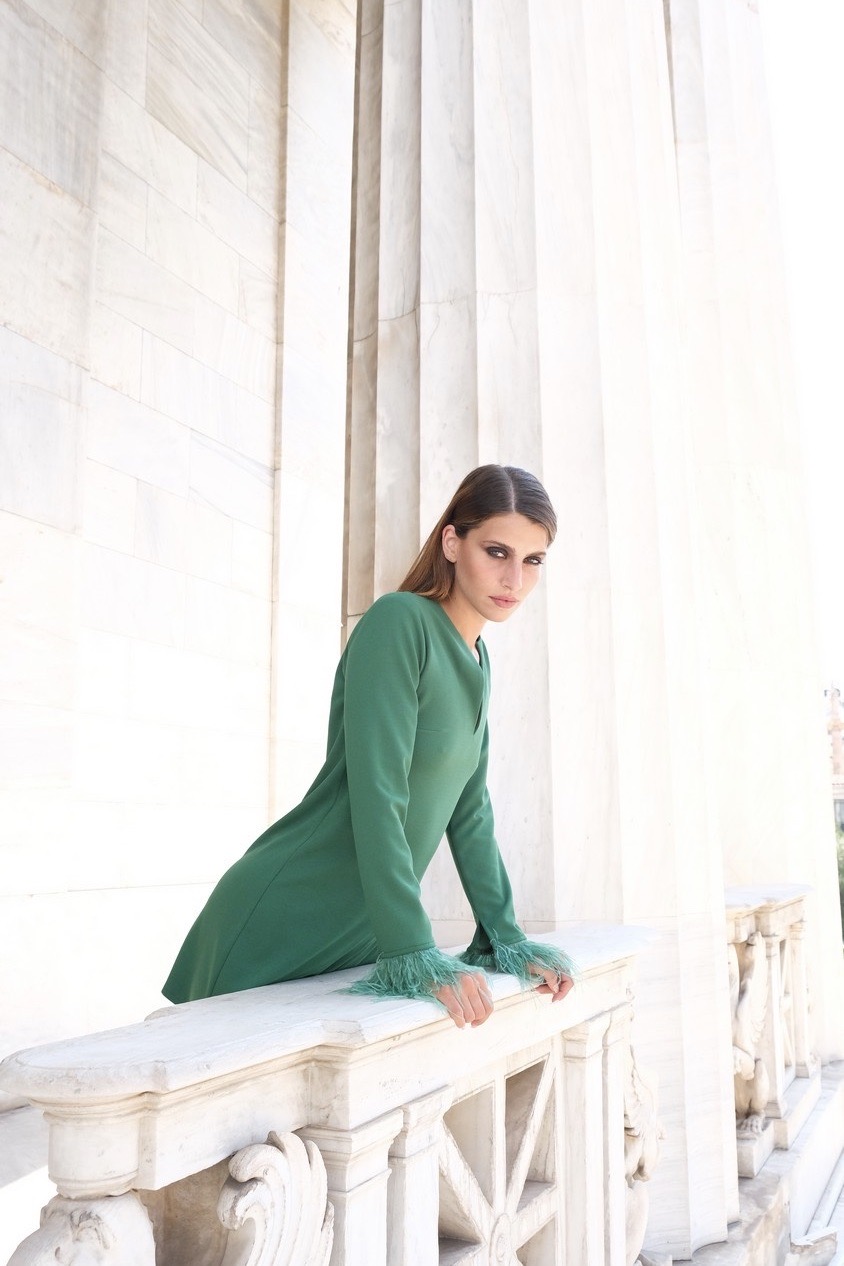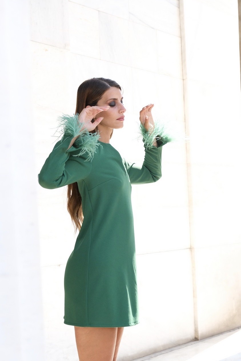Φόρεμα mini με μαραμπού στα μανίκια