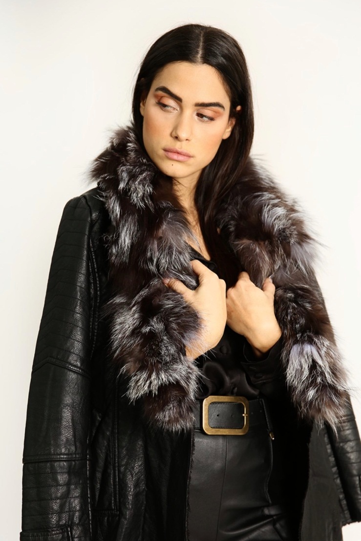 Παλτό μουτόν με γούνα εσωτερικά και αληθινή γούνα στο πέτο.