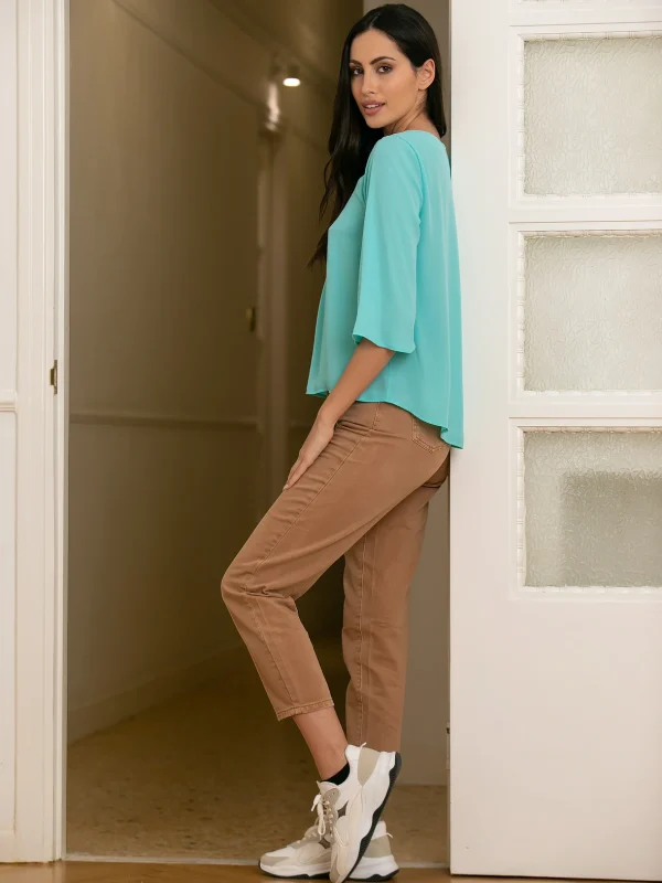Μπλούζα σατέν κρουαζέ με βολάν εμπρός