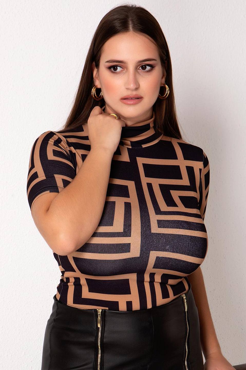 Μπλούζα ζιβάγκο κοντομάνικη, εμπριμέ, με ελαστικότητα