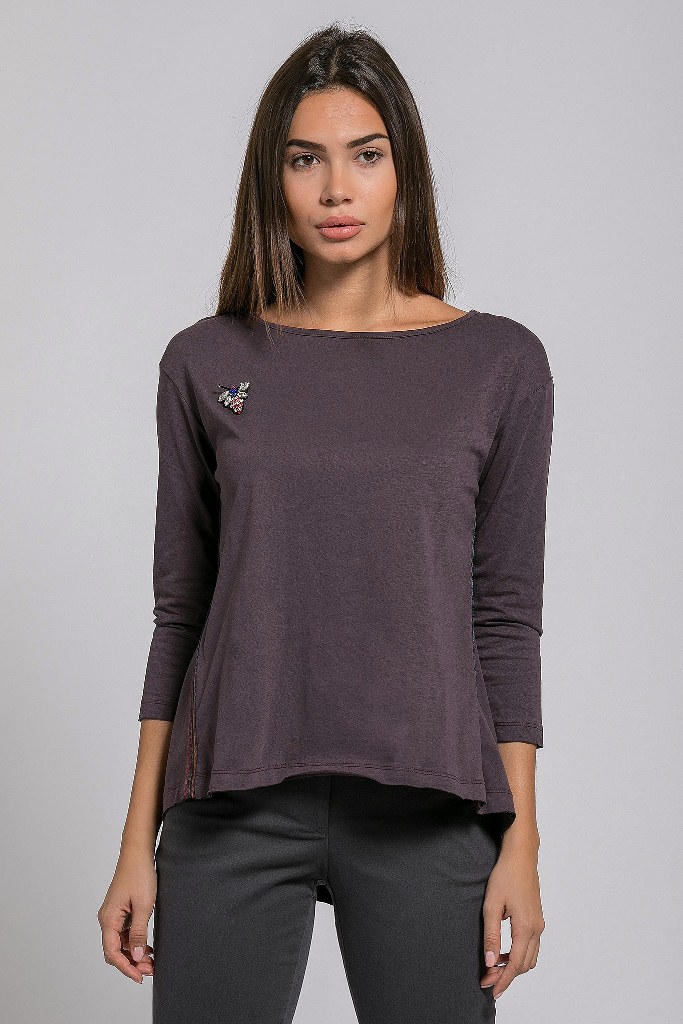 Casual μακρυμάνικη μπλούζα με διακοσμητική καρφίτσα