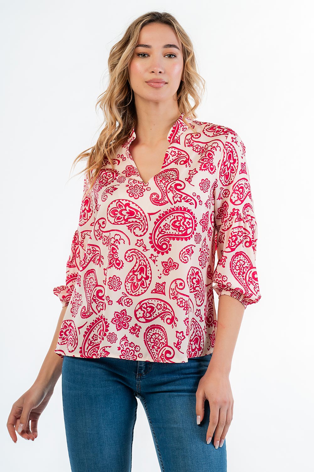 Μπλούζα με λαχούρια, σατέν, με μανίκι και Μάο γιακά