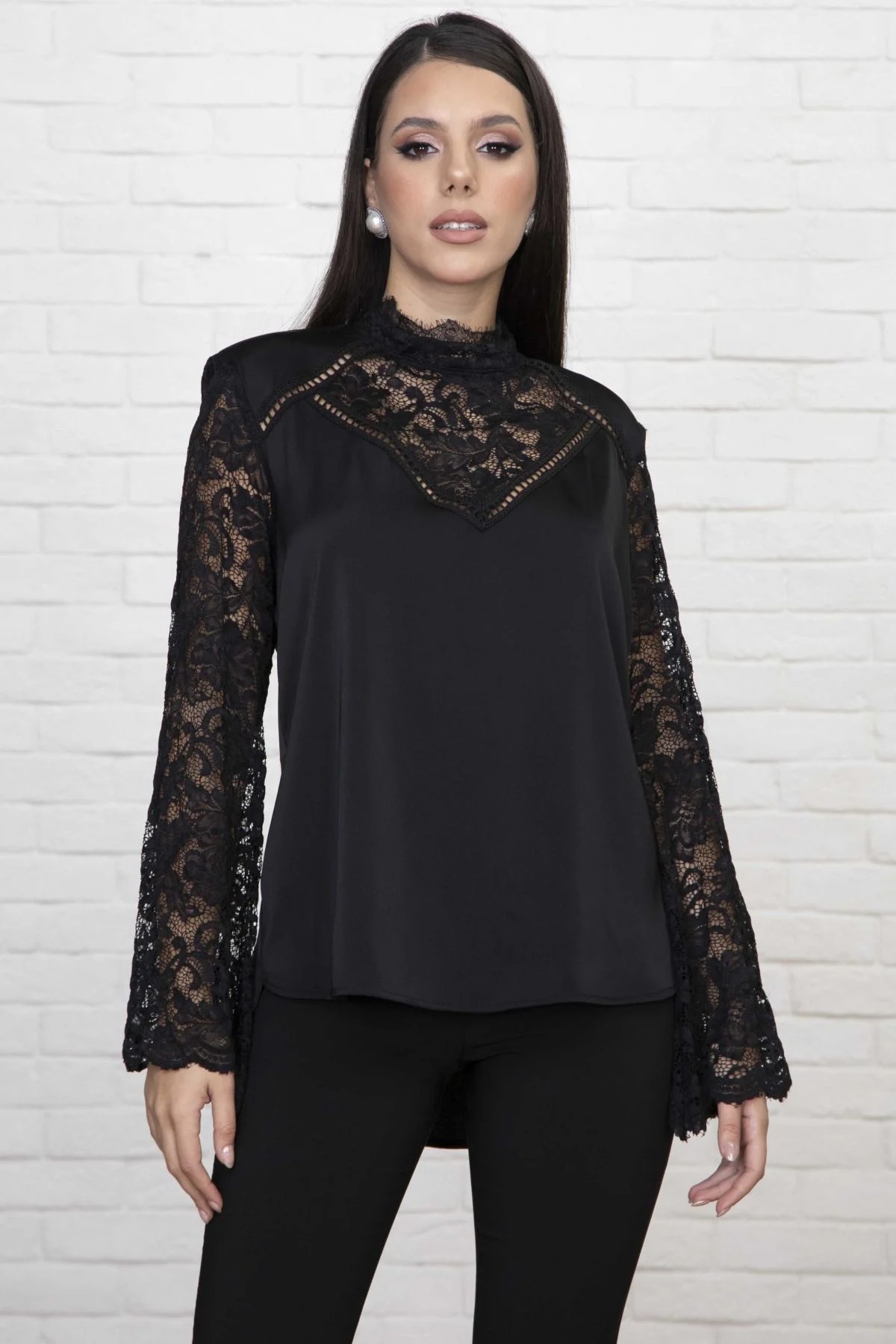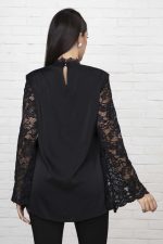Μπλούζα σατέν με δαντέλα στα μανίκια