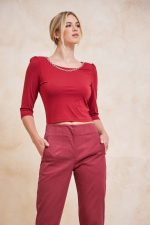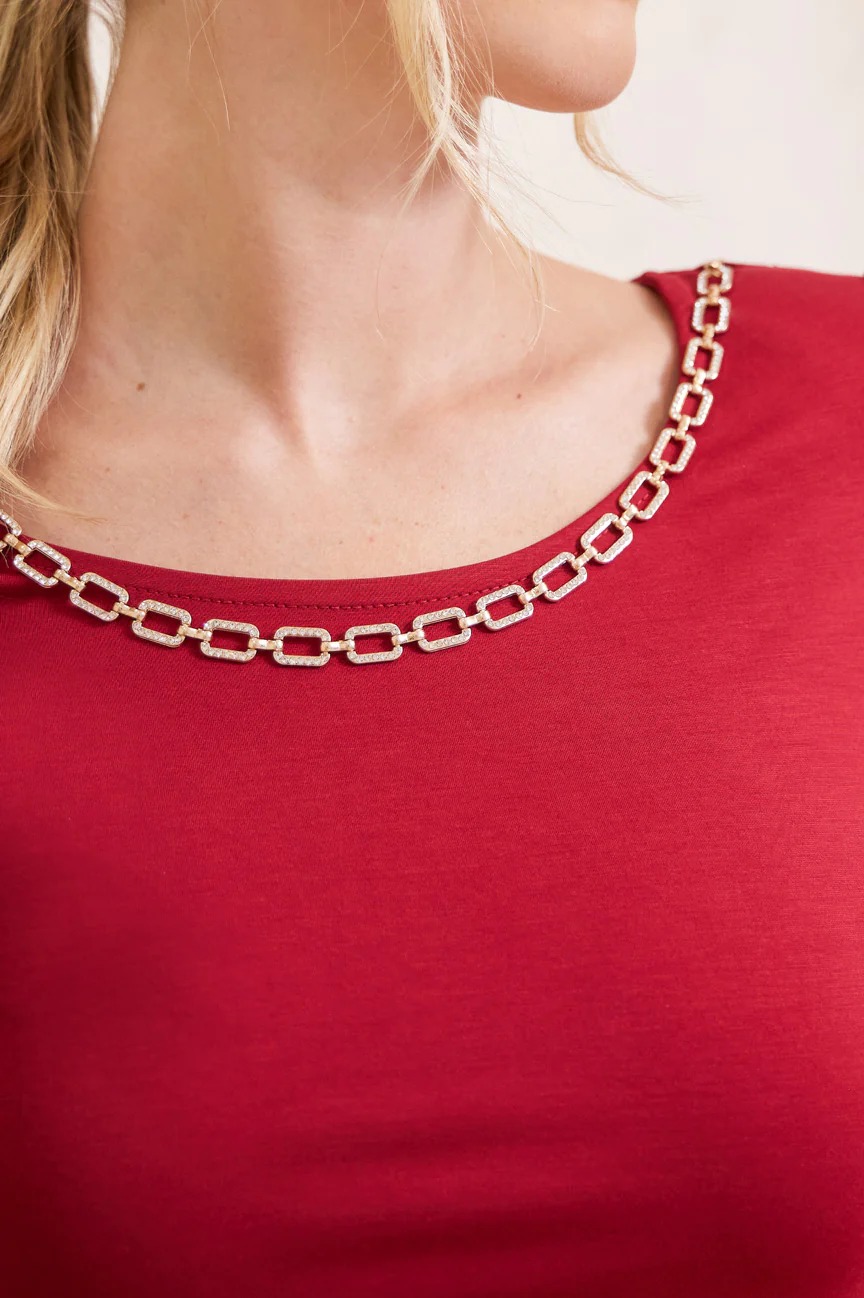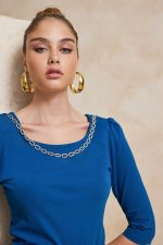 Μπλούζα με αλυσίδα διακοσμητική. Ελαστικό ύφασμα.