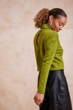 Μπλούζα μακρυμάνικη με ζιβάγκο. Ελαστικό, πλεκτό ύφασμα.