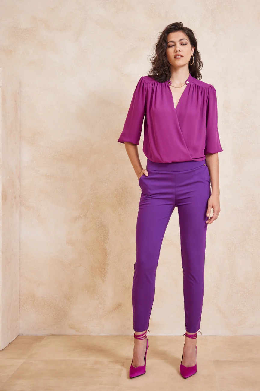 Σταθερό ύφασμα με άνετη κίνηση. Κρουαζέ σχέδιο με λάστιχο στην μέση.