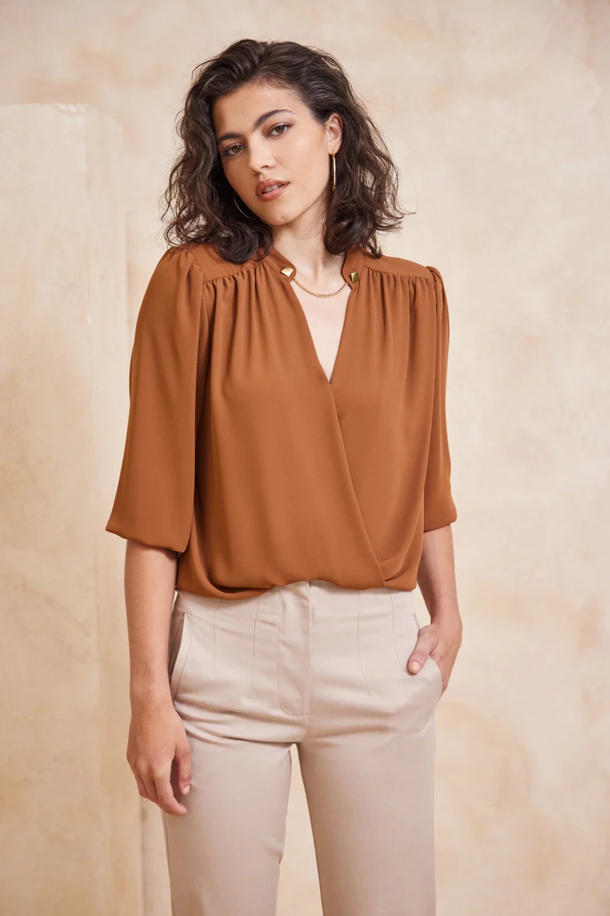 Μπλούζα με V ντεκολτέ. Χρυσό διακοσμητικό στην λαιμόκοψη.