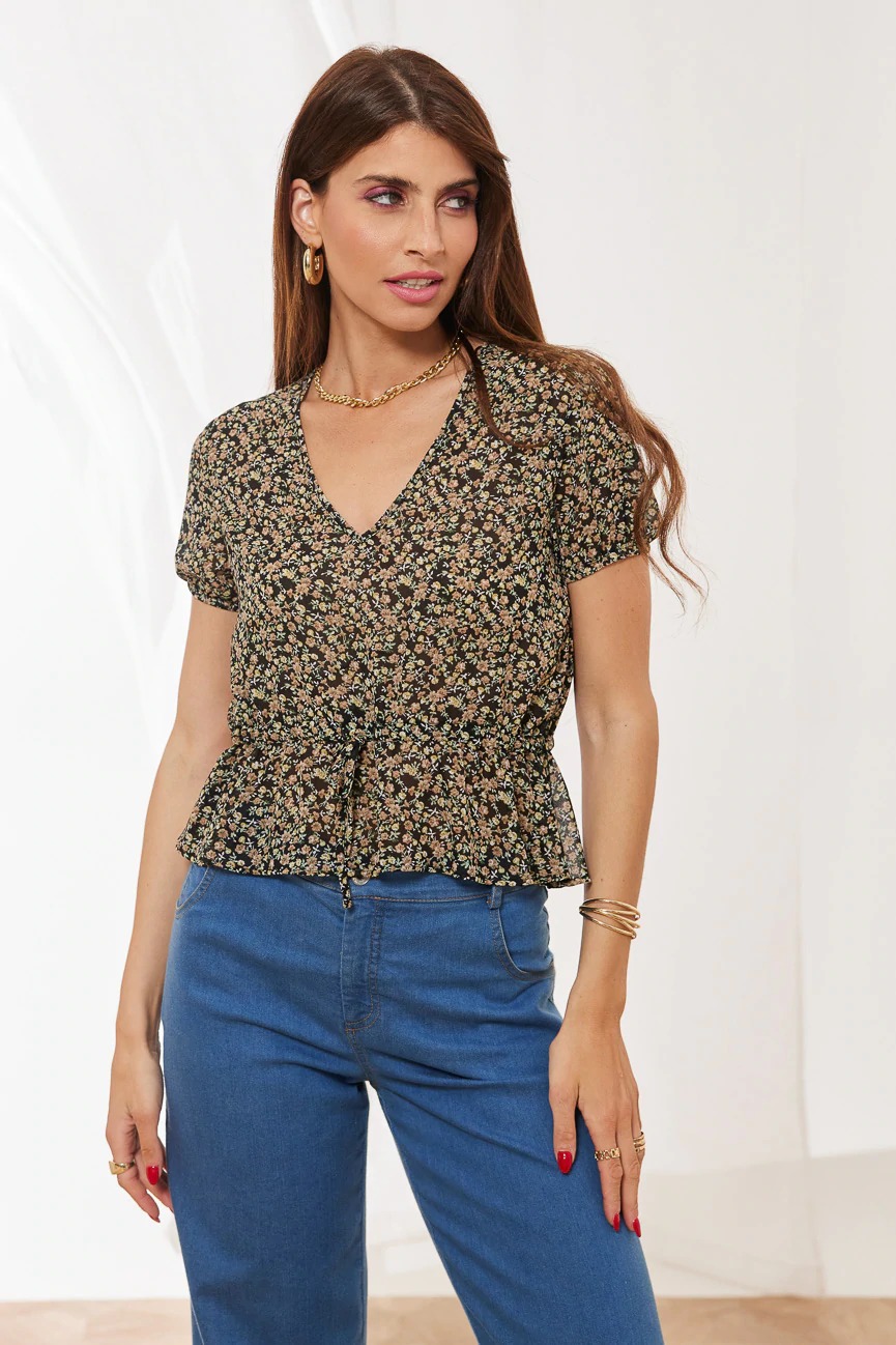 Τοπ κοντομάνικο V. Σταθερό ύφασμα μουσελίνα.
