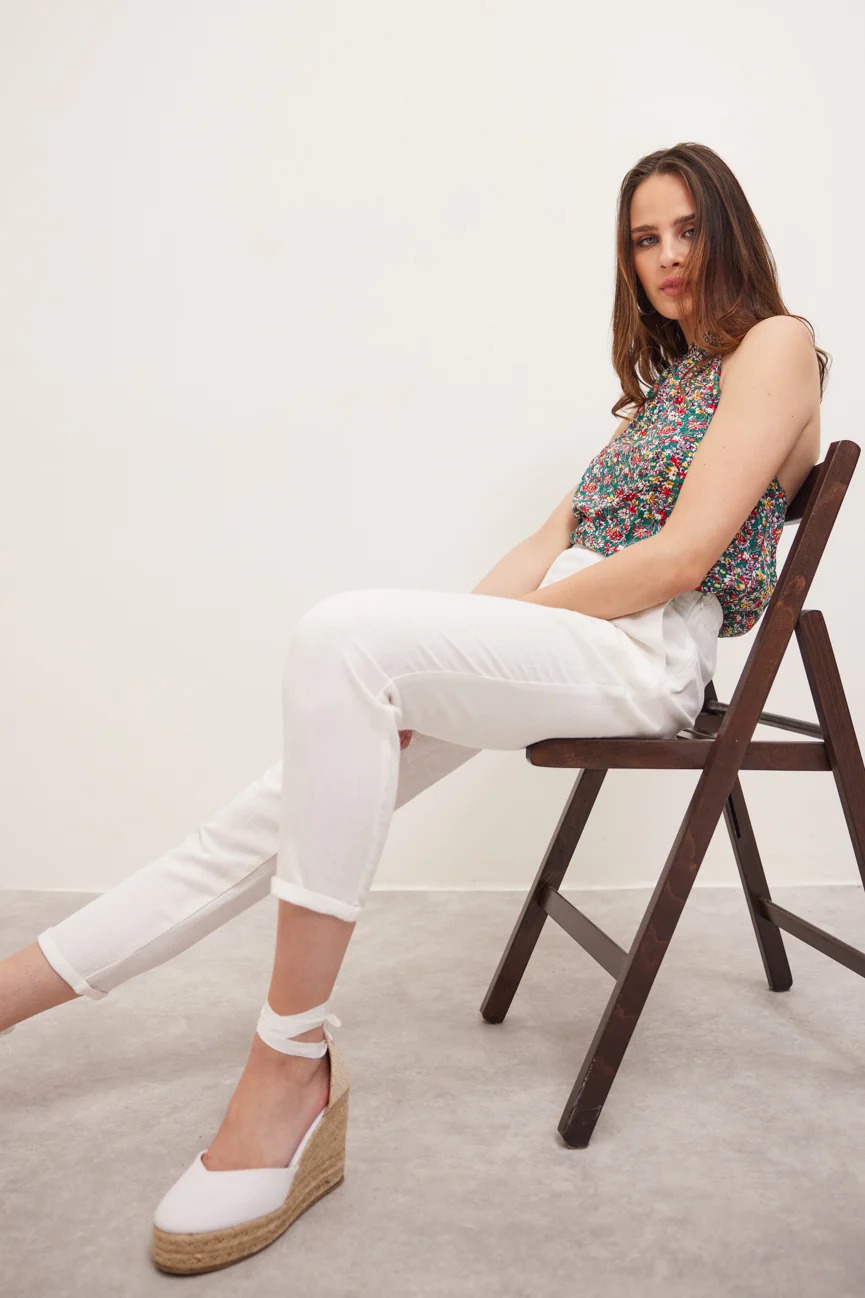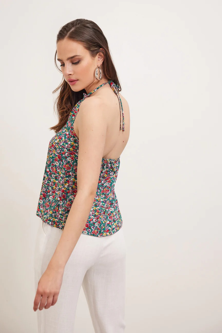 Μπλούζα αμάνικη φλοράλ. Σταθερό ύφασμα, βισκόζη.