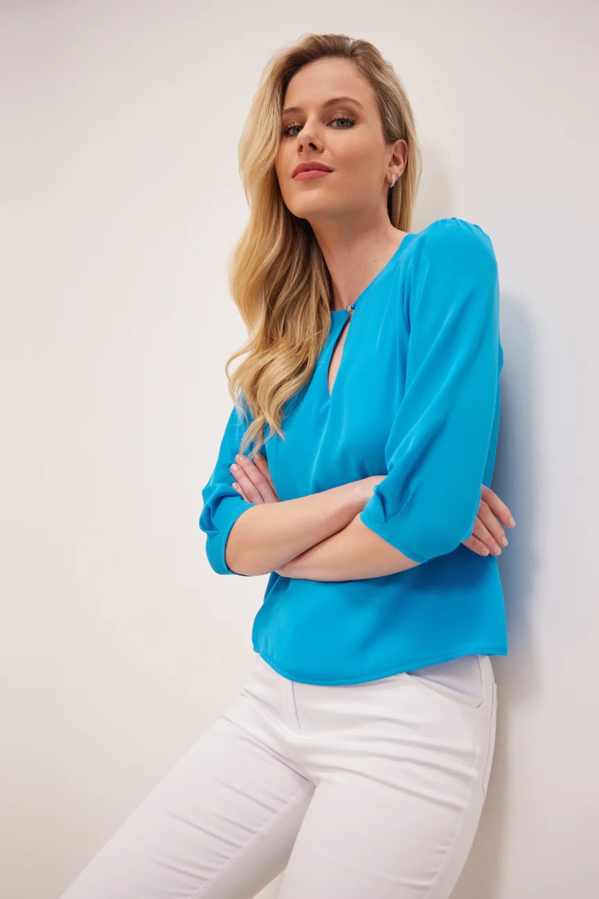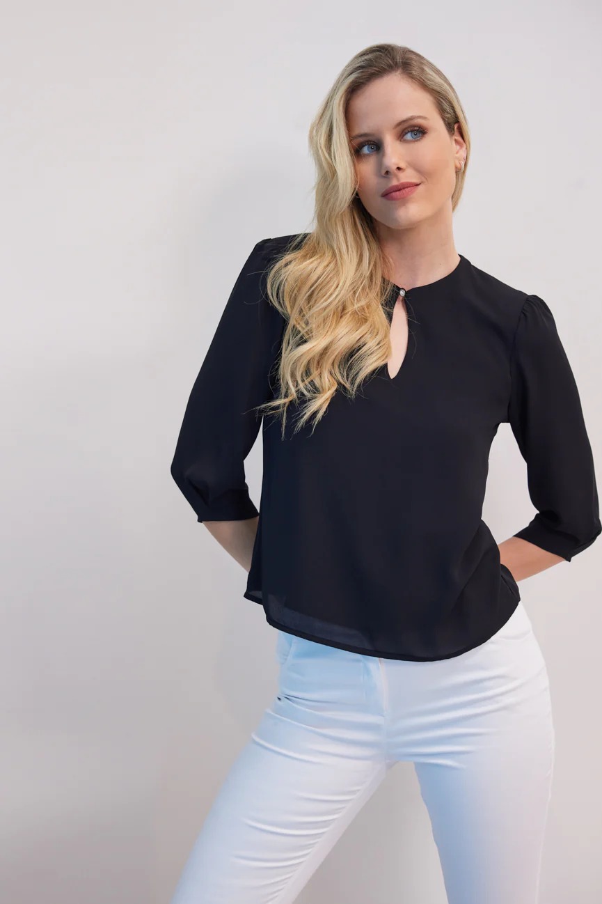Μπλούζα μονόχρωμη. Σταθερό ύφασμα μουσελίνα.