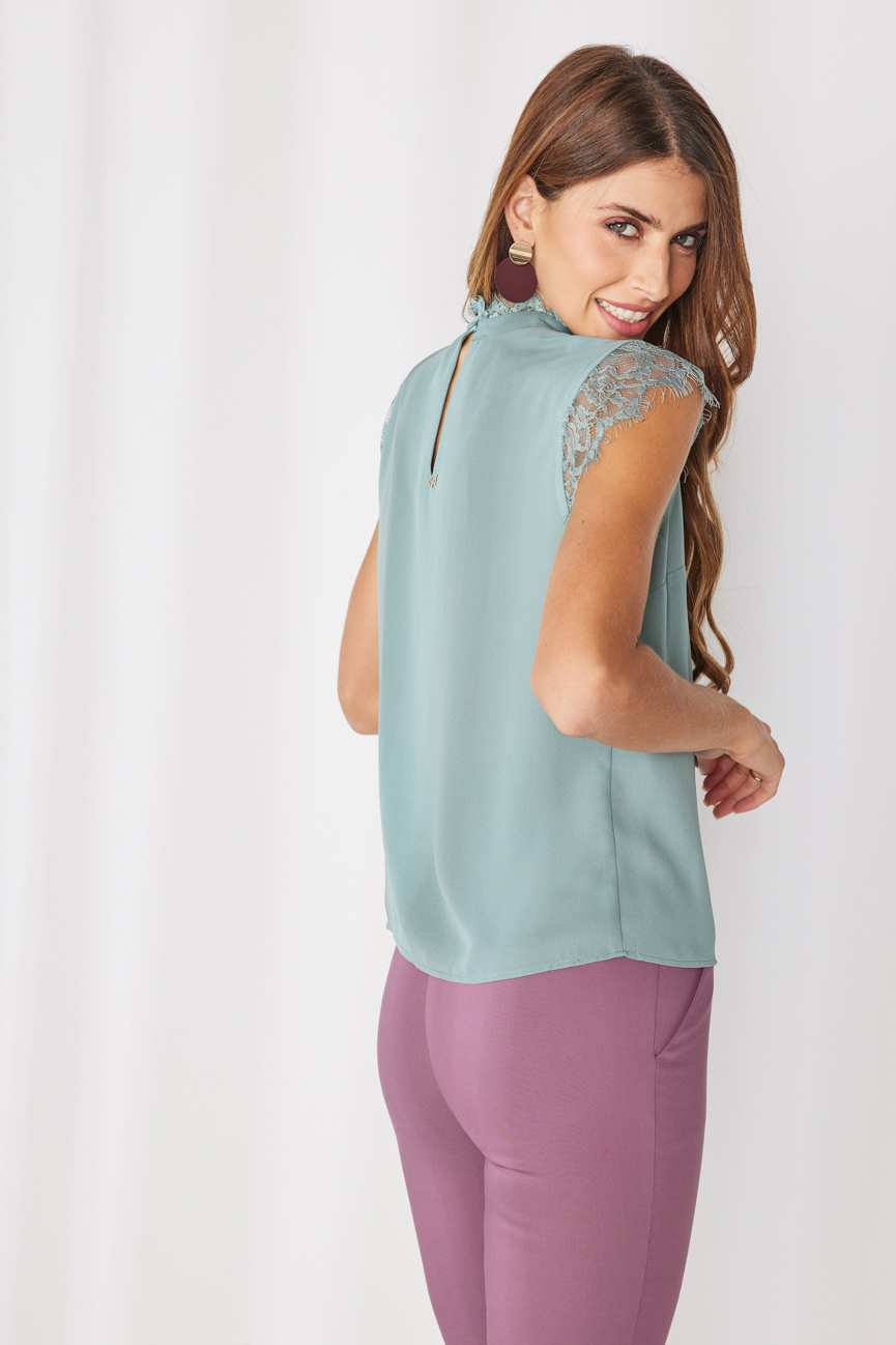 Μπλούζα δαντέλα εξώπλατη με φιόγκο στην πλάτη