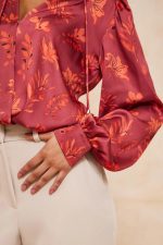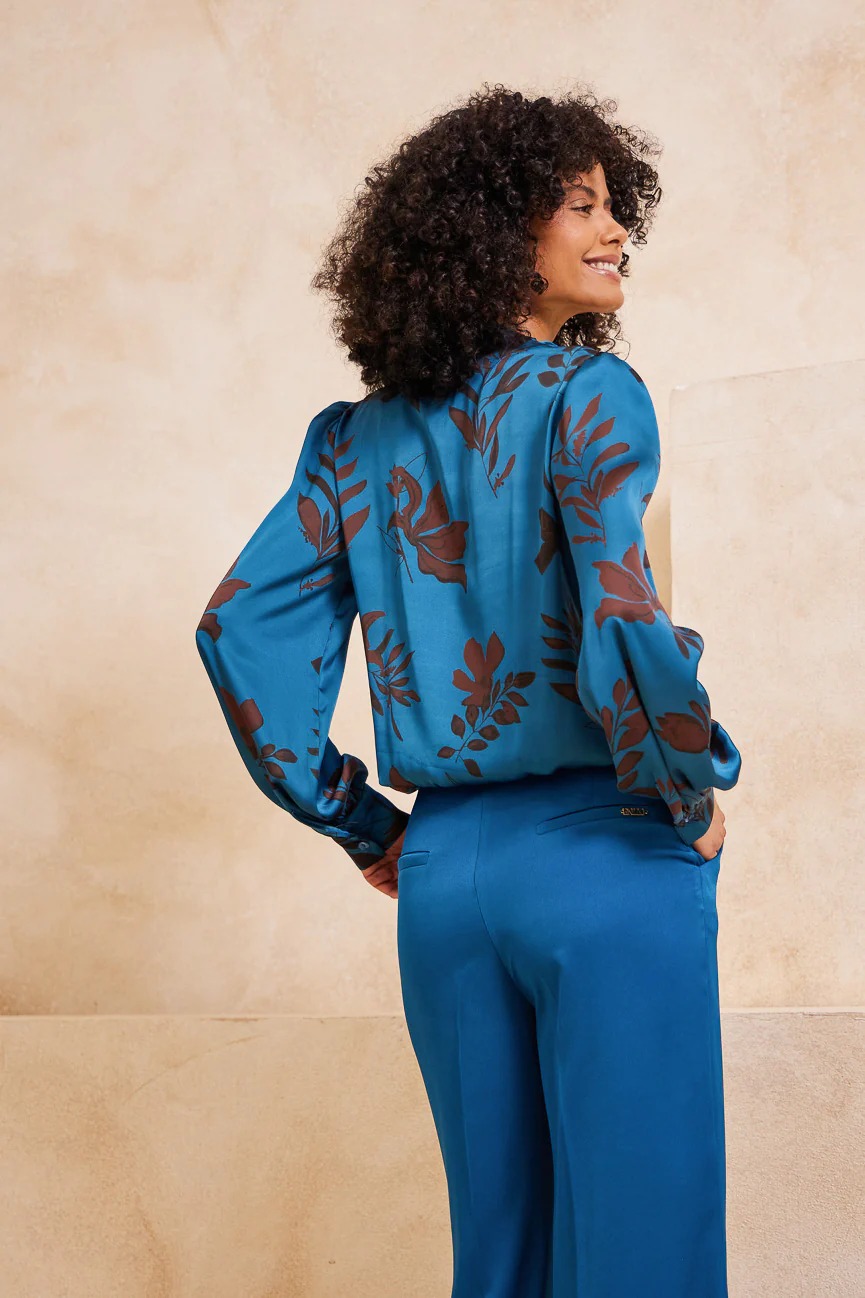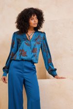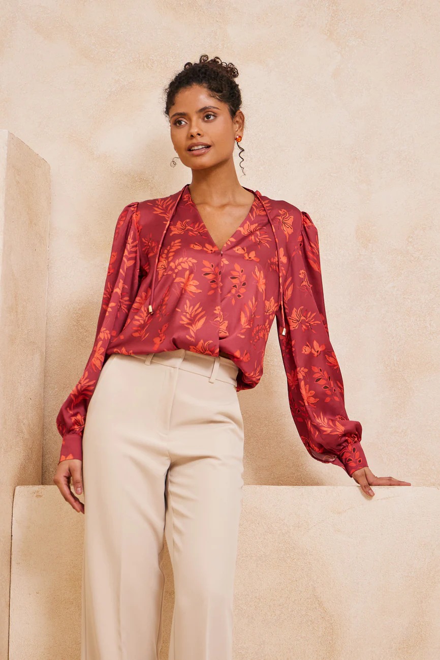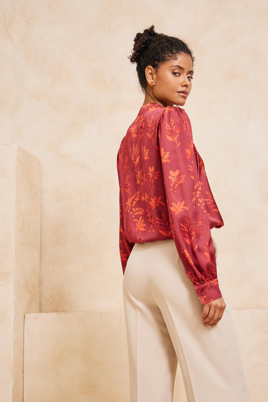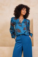 ​​Μπλούζα μακρυμάνικη εμπριμέ. Σταθερό ύφασμα με σατέν όψη.