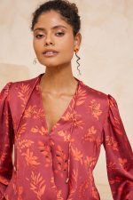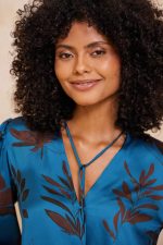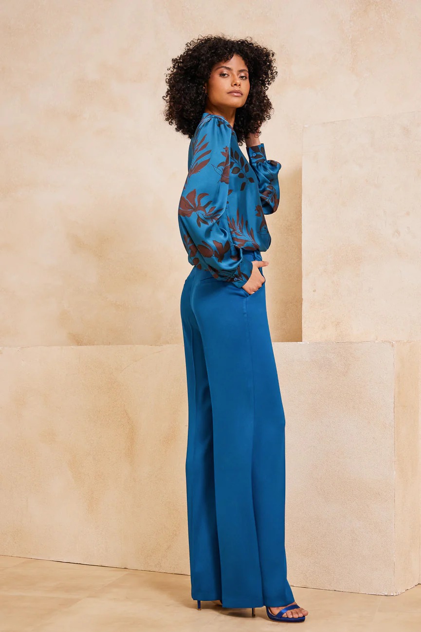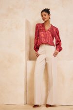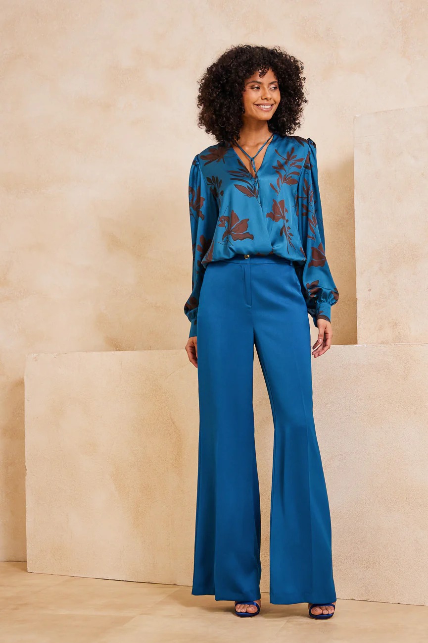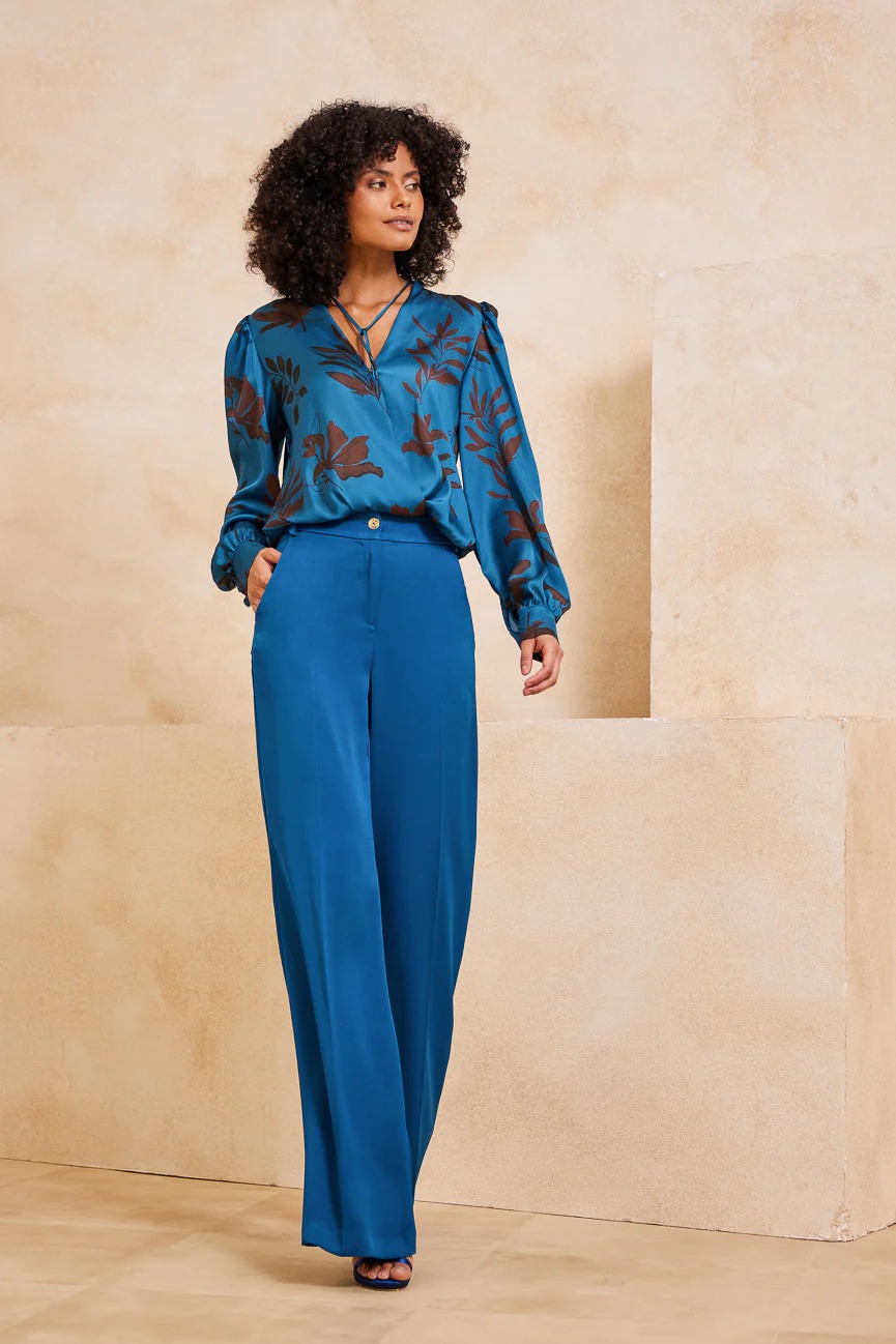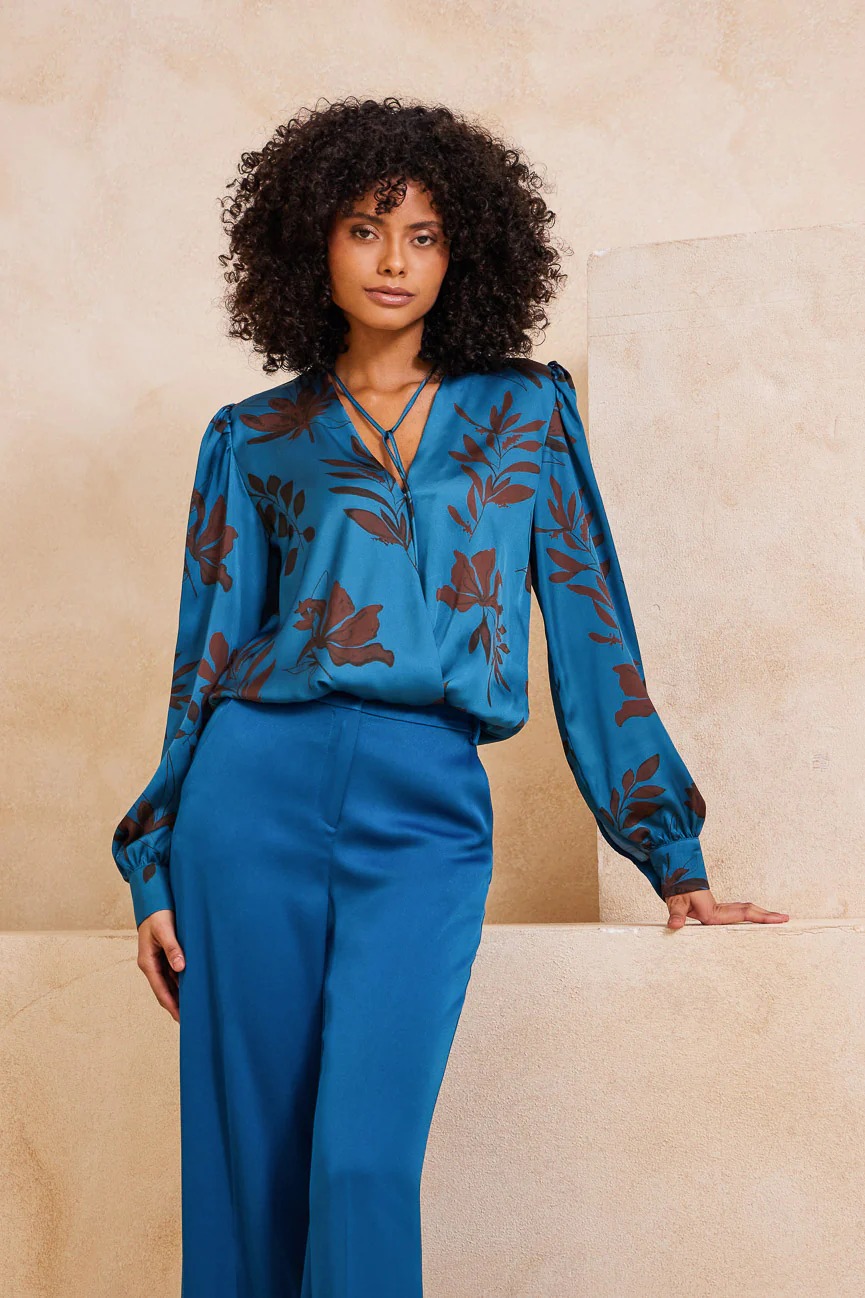 ​​Μπλούζα μακρυμάνικη εμπριμέ. Σταθερό ύφασμα με σατέν όψη.