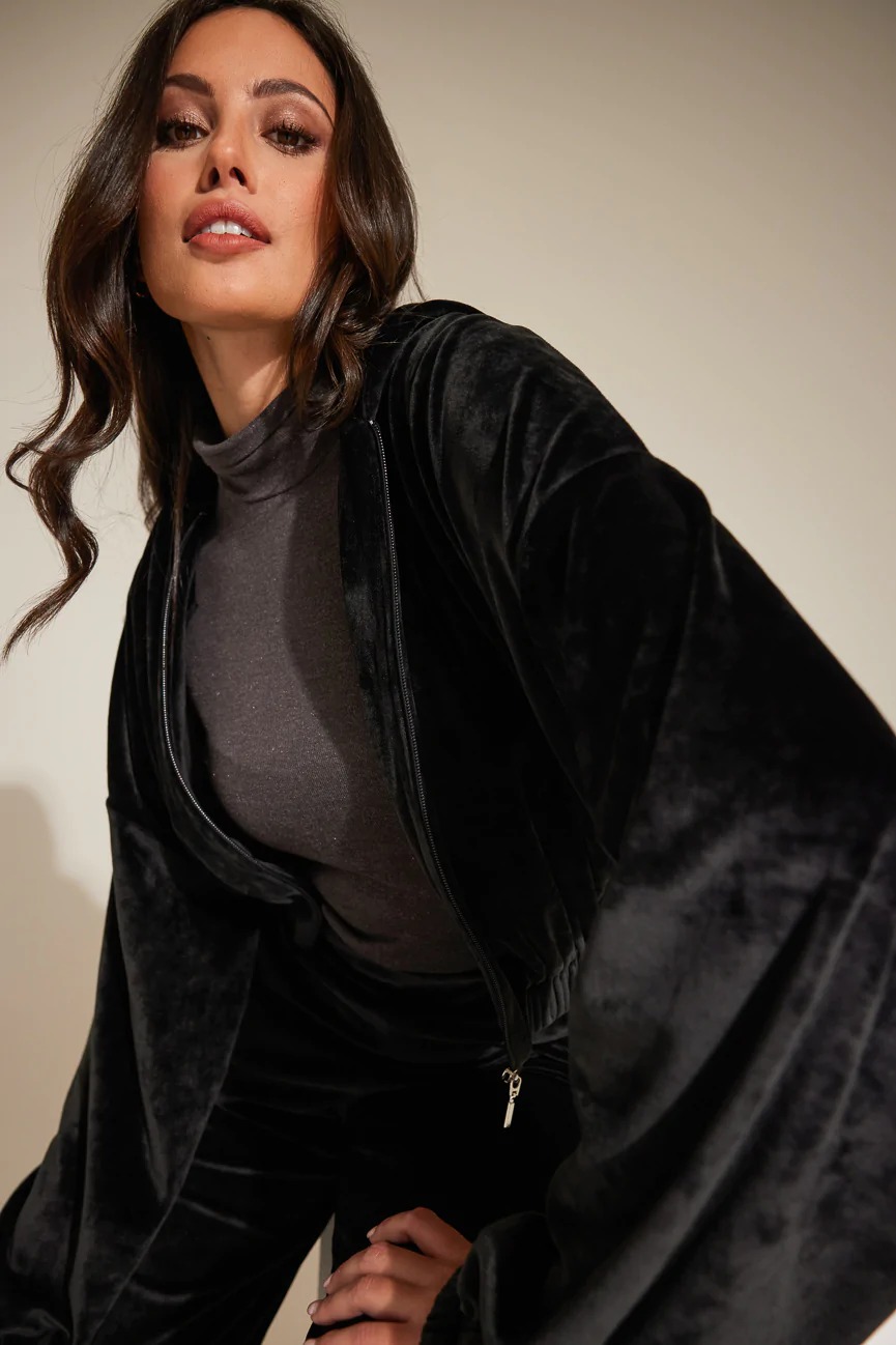 Ζακέτα με κουκούλα. Ελαστικό ύφασμα βελούδο.