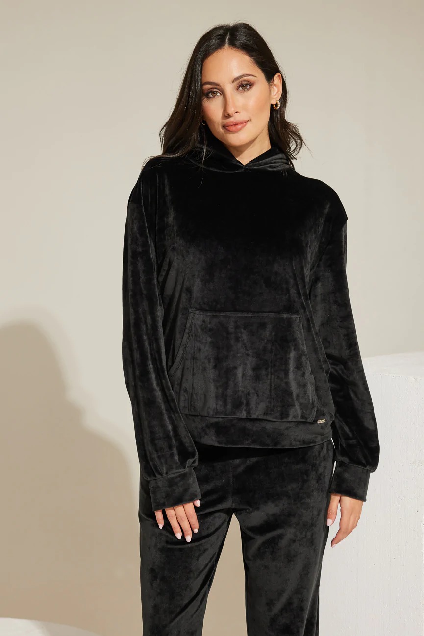 Μπλούζα με κουκούλα. Ελαστικό ύφασμα βελούδο.