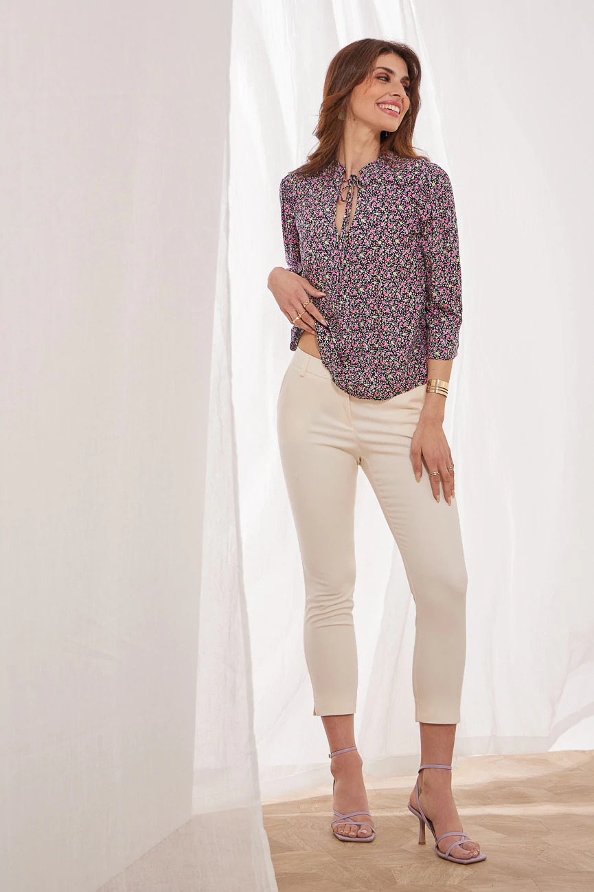 Μανίκι τριών τετάρτων και κορδόνι στο λαιμό.
