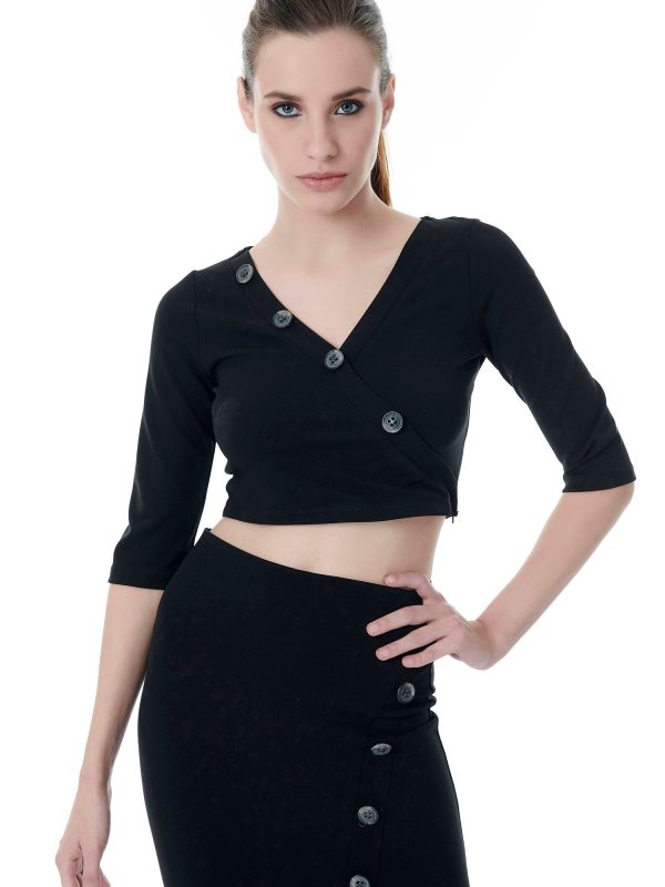 Μπλούζα ζιβάγκο, ριπ ύφανση. Πλεκτό ύφασμα, με ελαστικότητα.