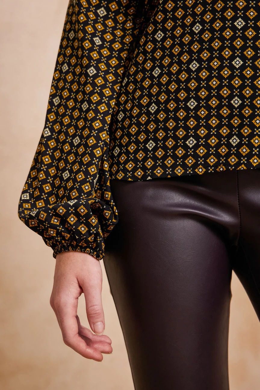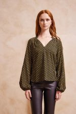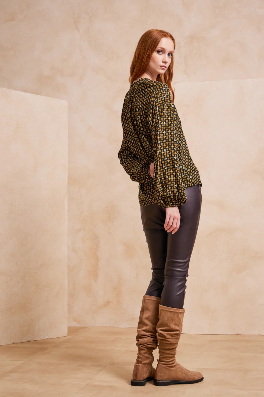 Mπλούζα μακρυμάνικη εμπριμέ. Σταθερό ύφασμα.