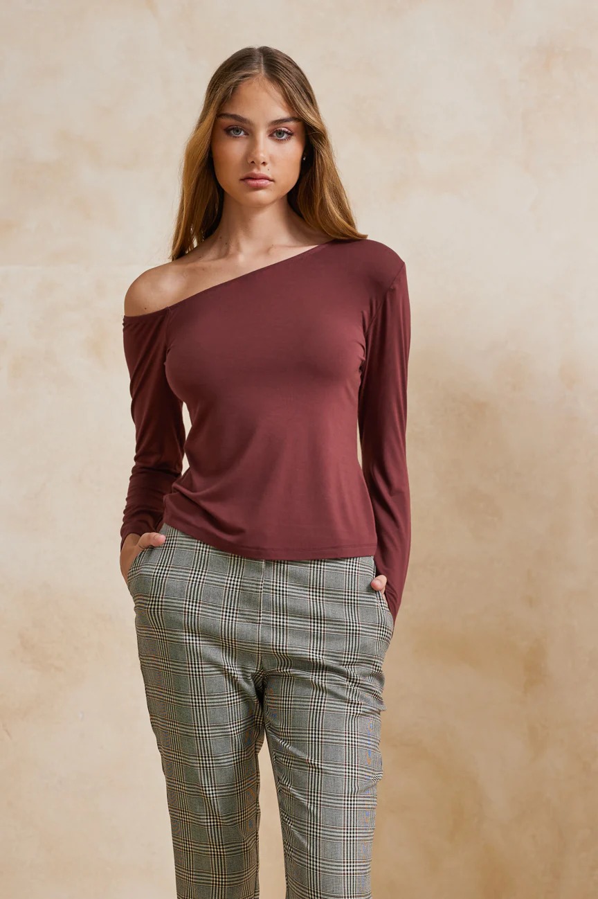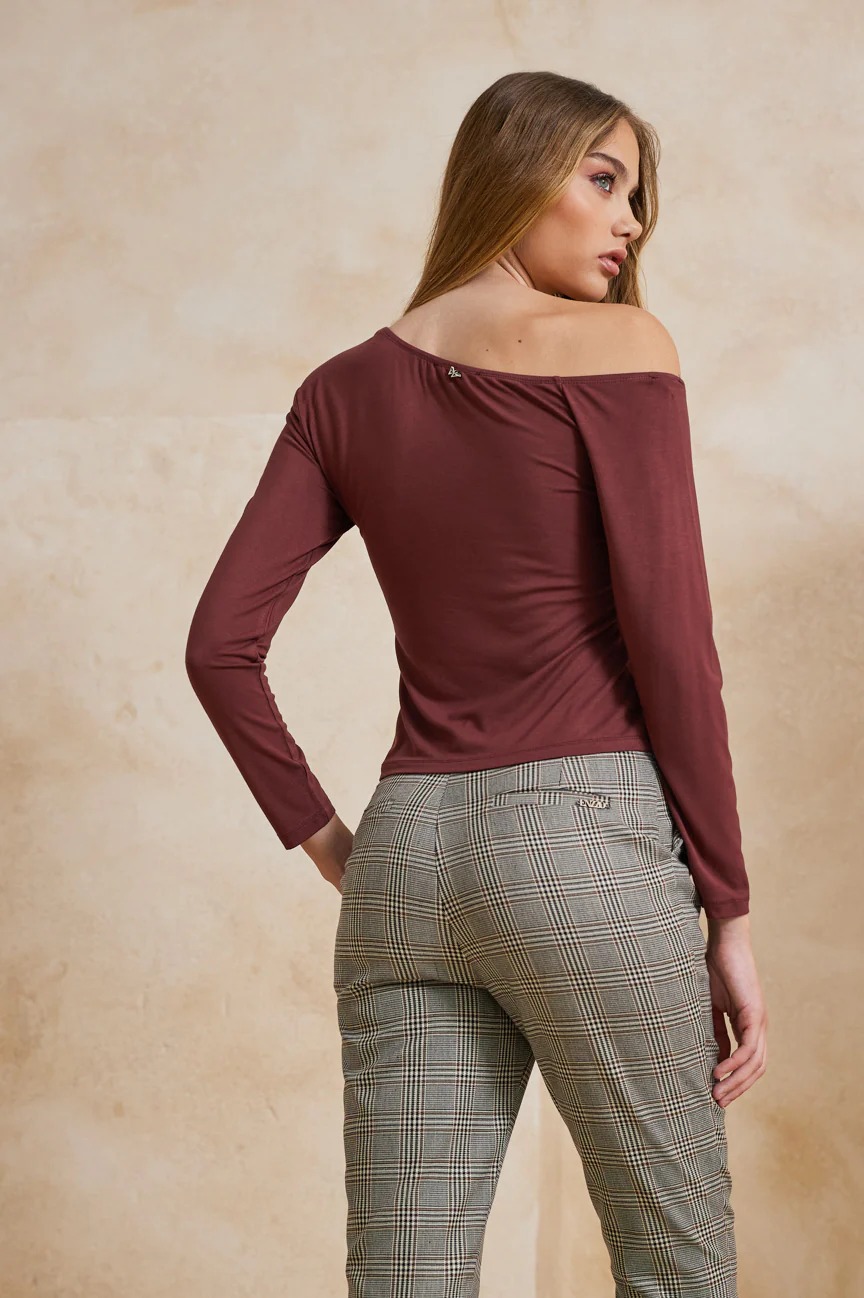 Μπλούζα μακρυμάνικη έξωμη. Διαθέτει ελαστικότητα.