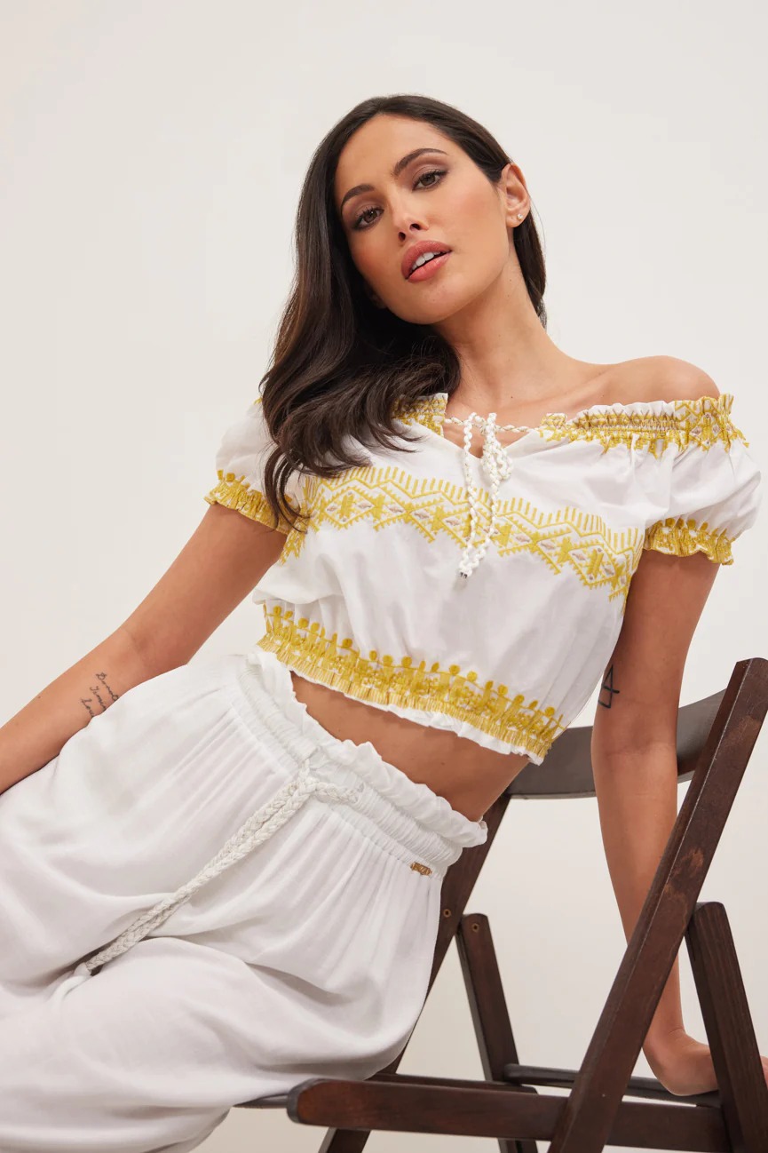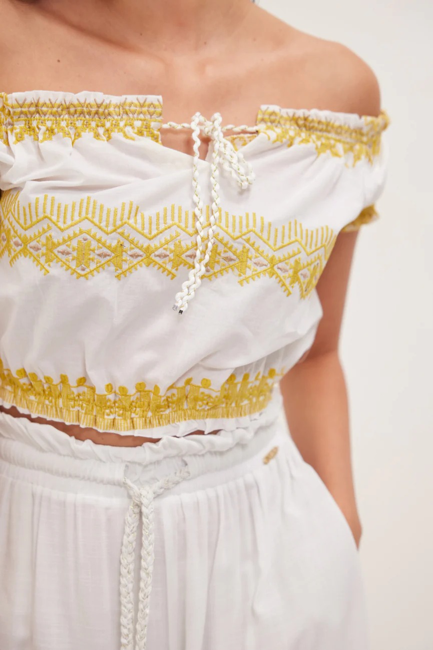 Σχέδιο με κέντημα. Διακοσμητικό κορδονάκι. Λαστιχάκι στο τελείωμα.