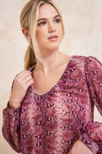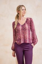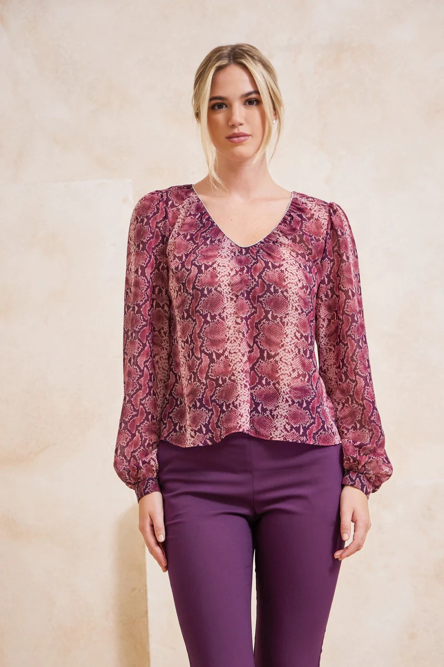 Μπλούζα, εμπριμέ με V ντεκολτέ. Σταθερό ύφασμα με άνετη κίνηση.