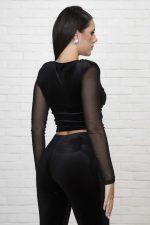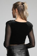 Μπλούζα cropped βελούδινη με διαφάνεια στα μανίκια.