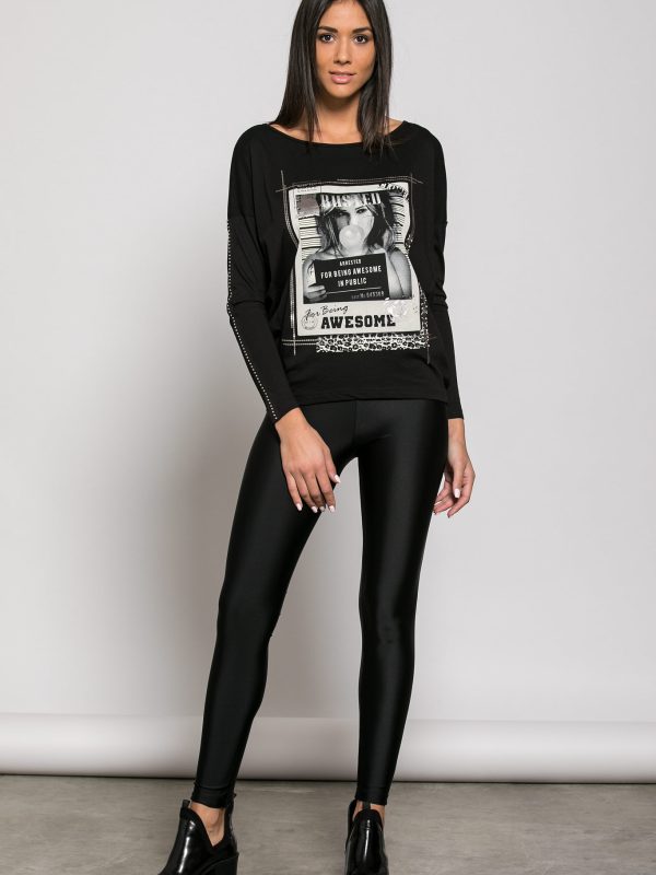 Μπλούζα με μεταλλιζέ print. Ελαστικό ύφασμα.