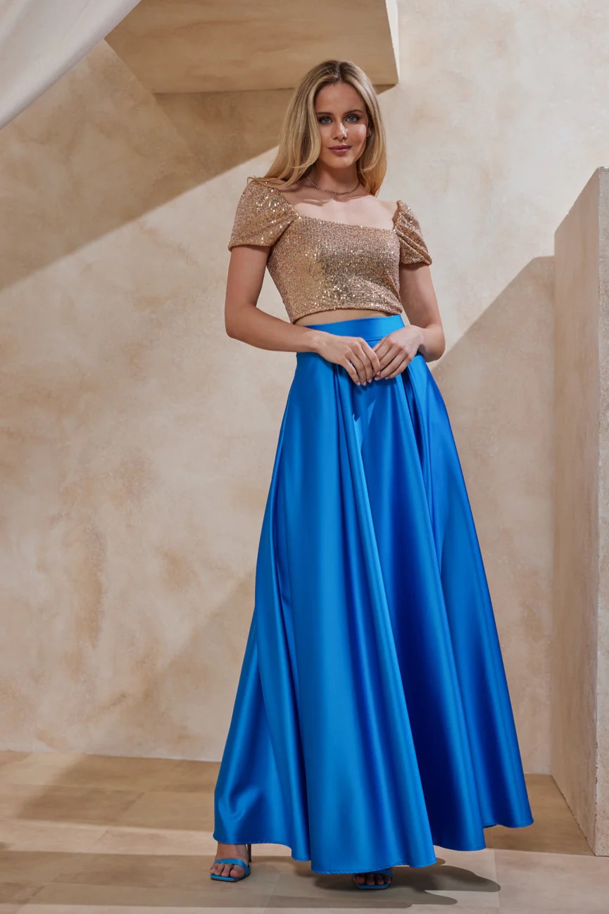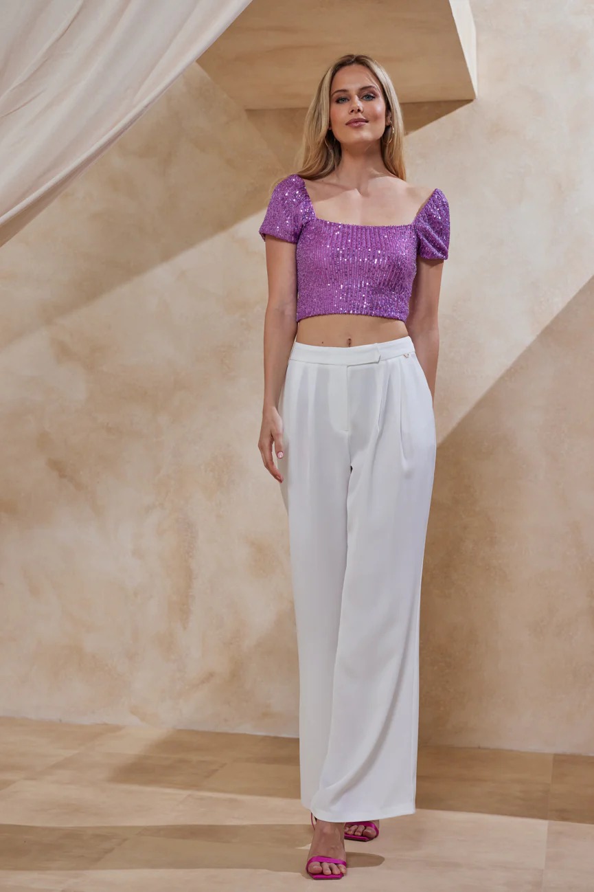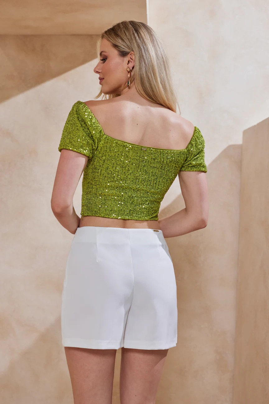 Μπούστο κοντομάνικο. Ελαστικό ύφασμα, παγιέτα. Εφαρμοστό με άνετη κίνηση.