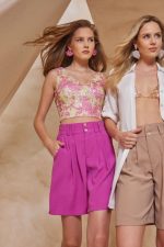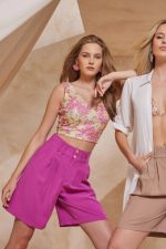 Μπούστο εμπριμέ. Ελαστικό ύφασμα, παγιέτα. Εφαρμοστό με άνετη κίνηση.