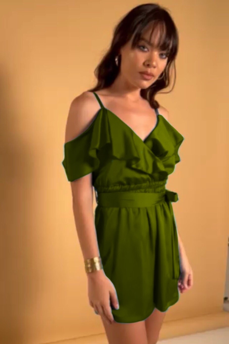Ολόσωμη φόρμα σόρτς, σατέν με τιράντα και βολάν