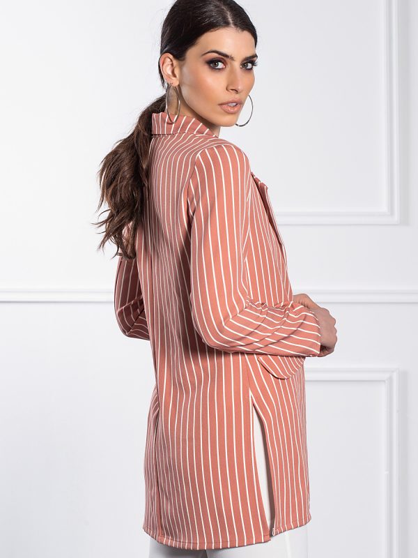 Σταυρωτό κλείσιμο εμπρός. Κλείσιμο με ταρταρούγα κουμπιά. Φόδρα εσωτερικά. Μετρήσεις μοντέλου: