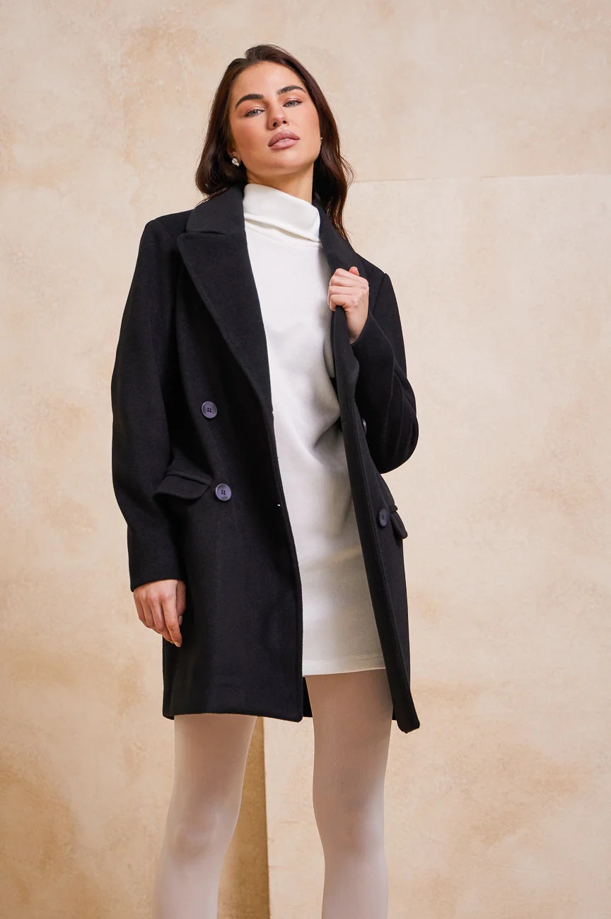 Παλτό με πέτο γιακά. Σταθερό ύφασμα.