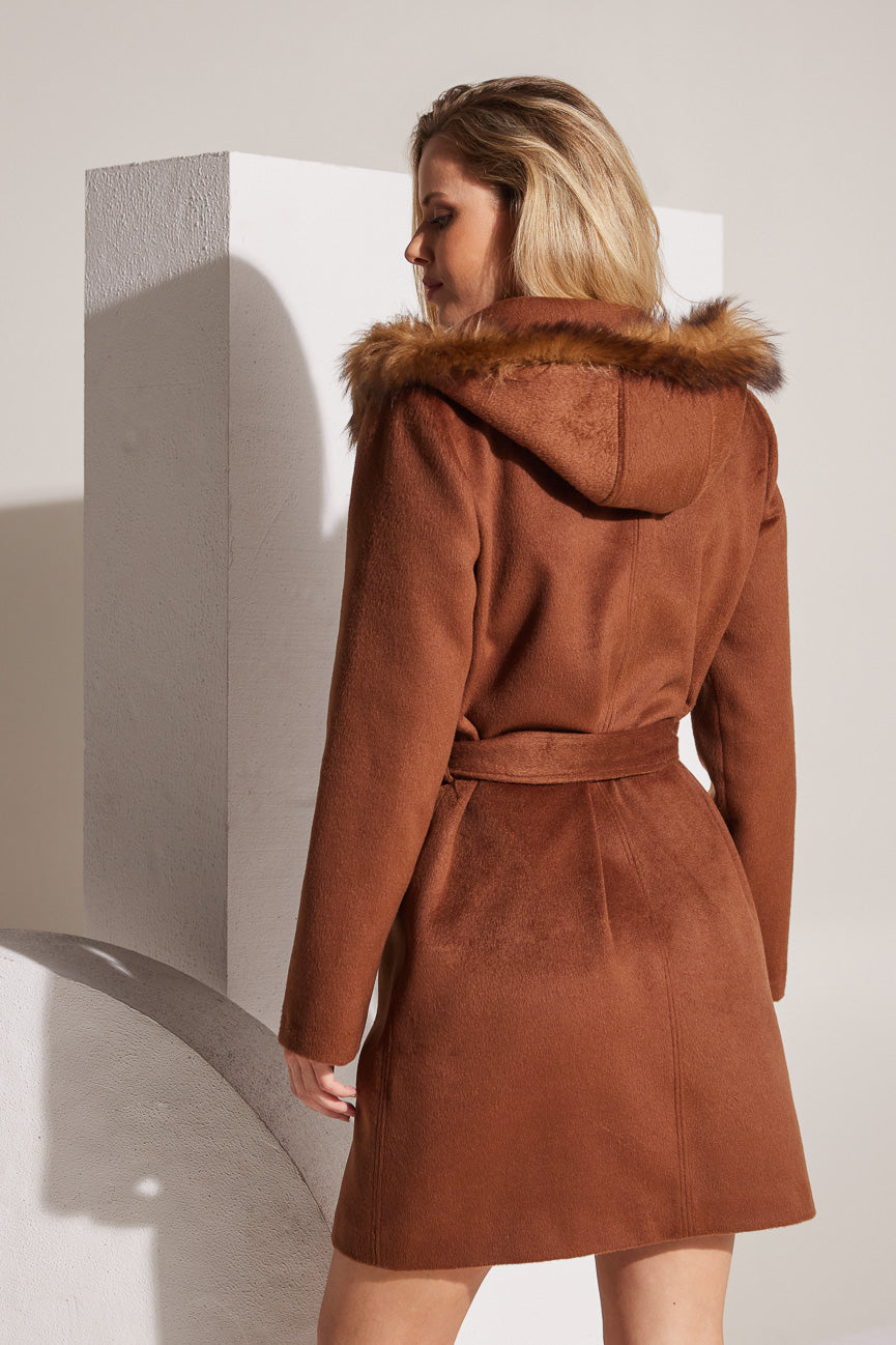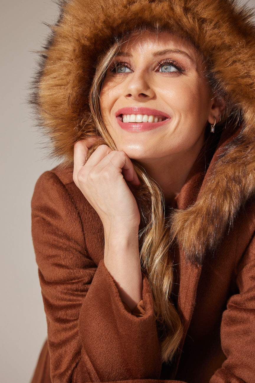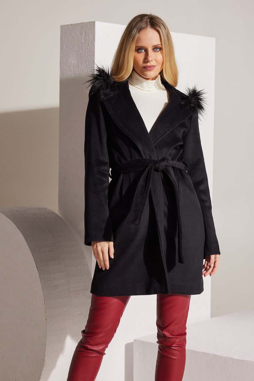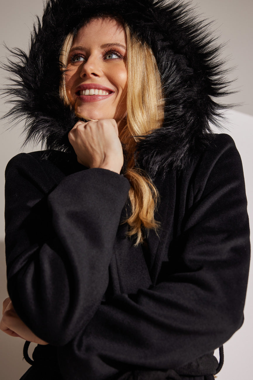Άνετη γραμμή και κίνηση. Κουκούλα με γουνάκι.