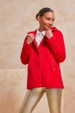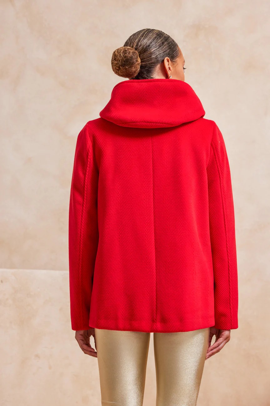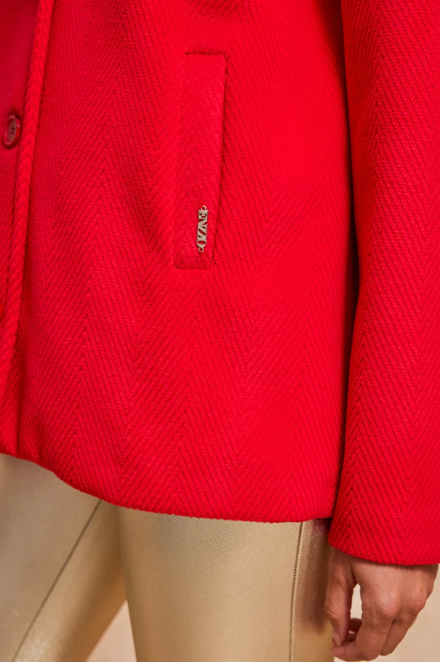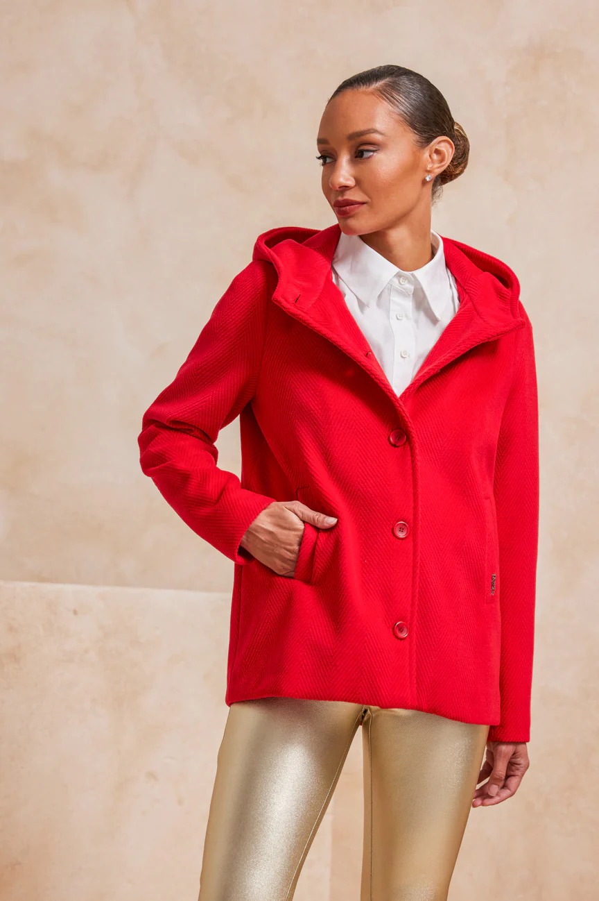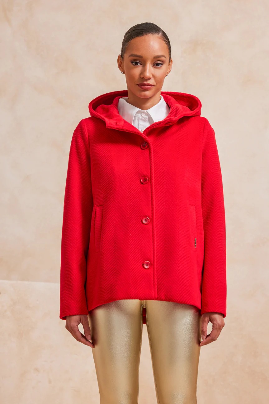 Παλτό κοντό με κουκούλα. Σταθερό ύφασμα, βελούρ.