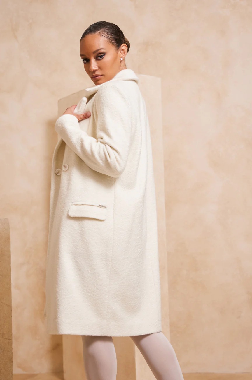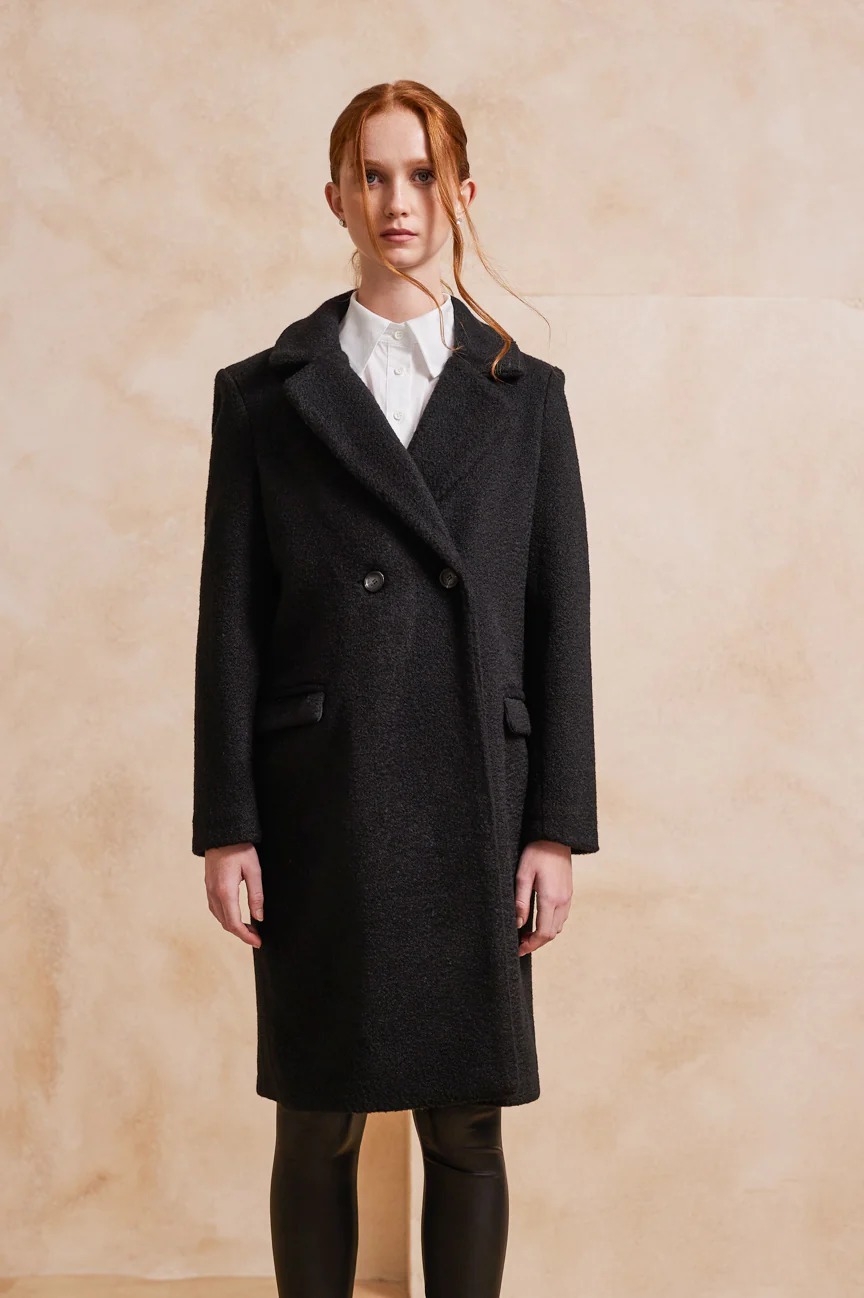Παλτό μπουκλέ. Σταθερό ύφασμα με απαλή υφή.
