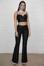 Παντελόνα παγιέτα. Με λάστιχο στη μέση.