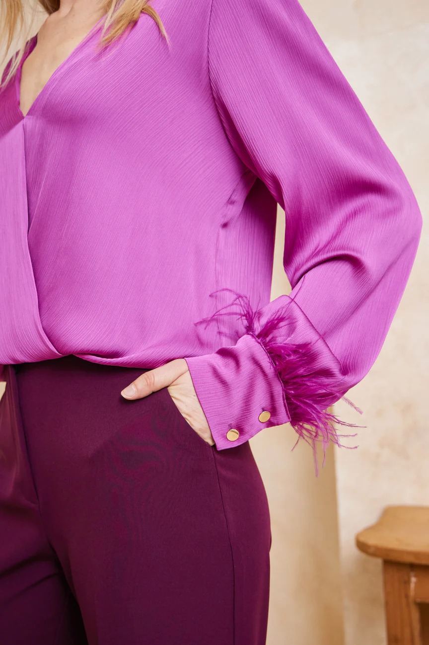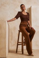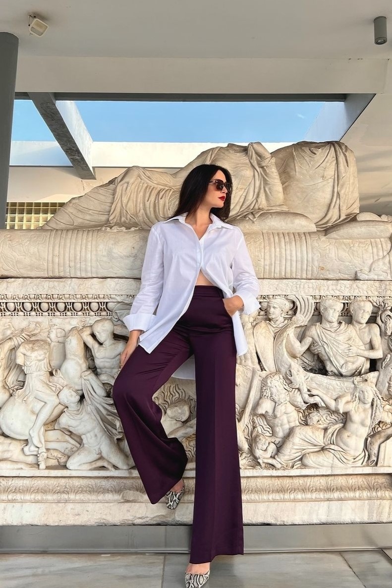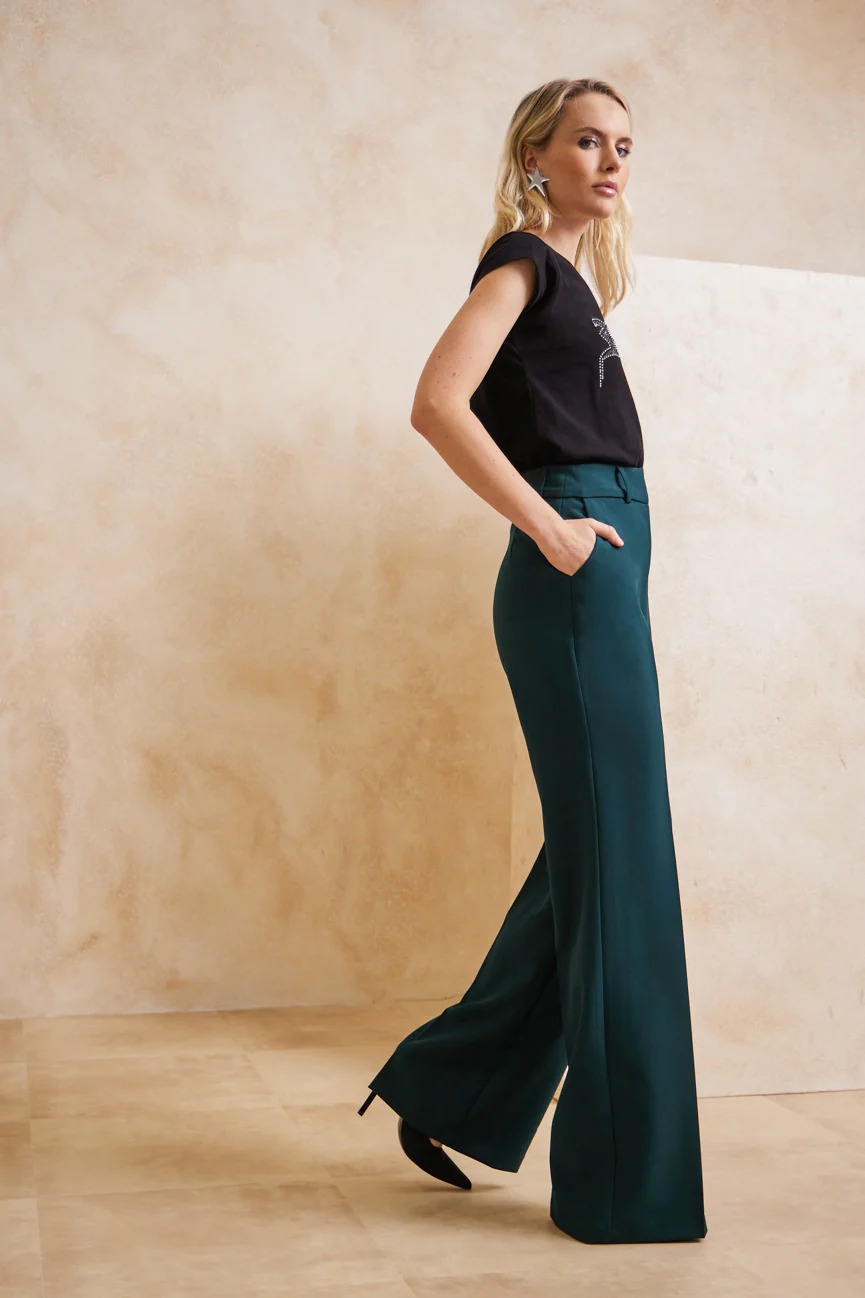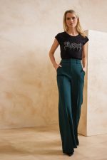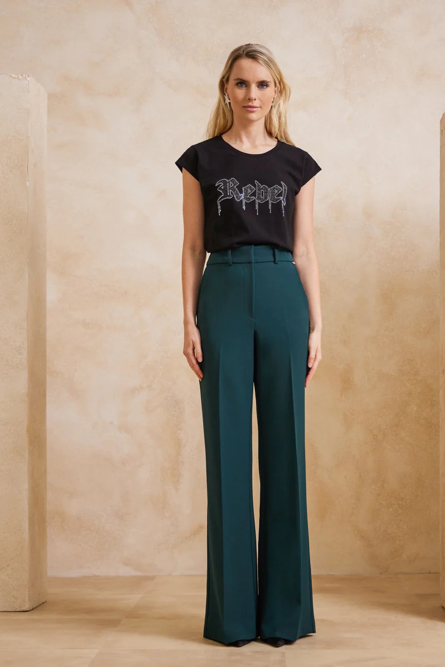 Παντελόνα ψηλόμεση με τσάκιση. Σταθερό ύφασμα με μικρή ελαστικότητα.