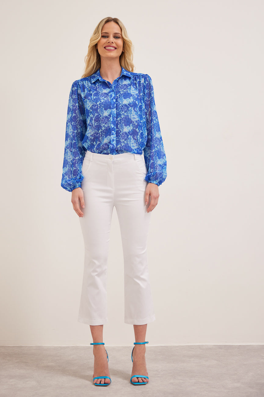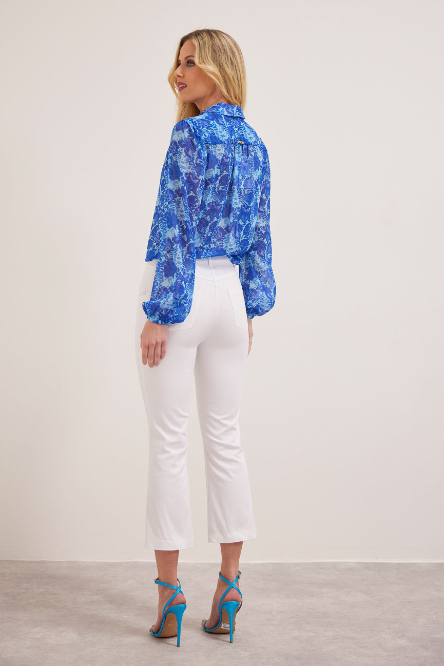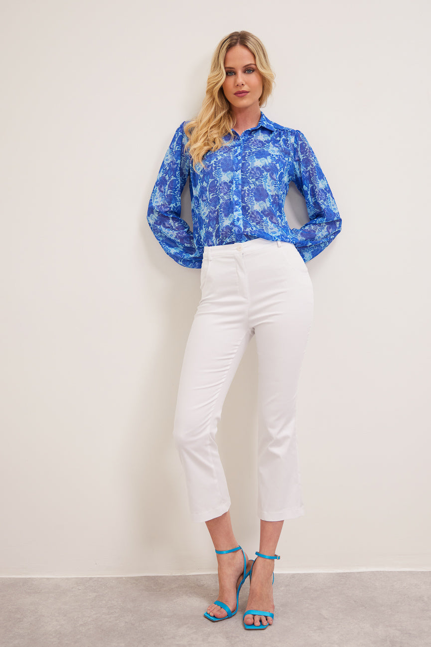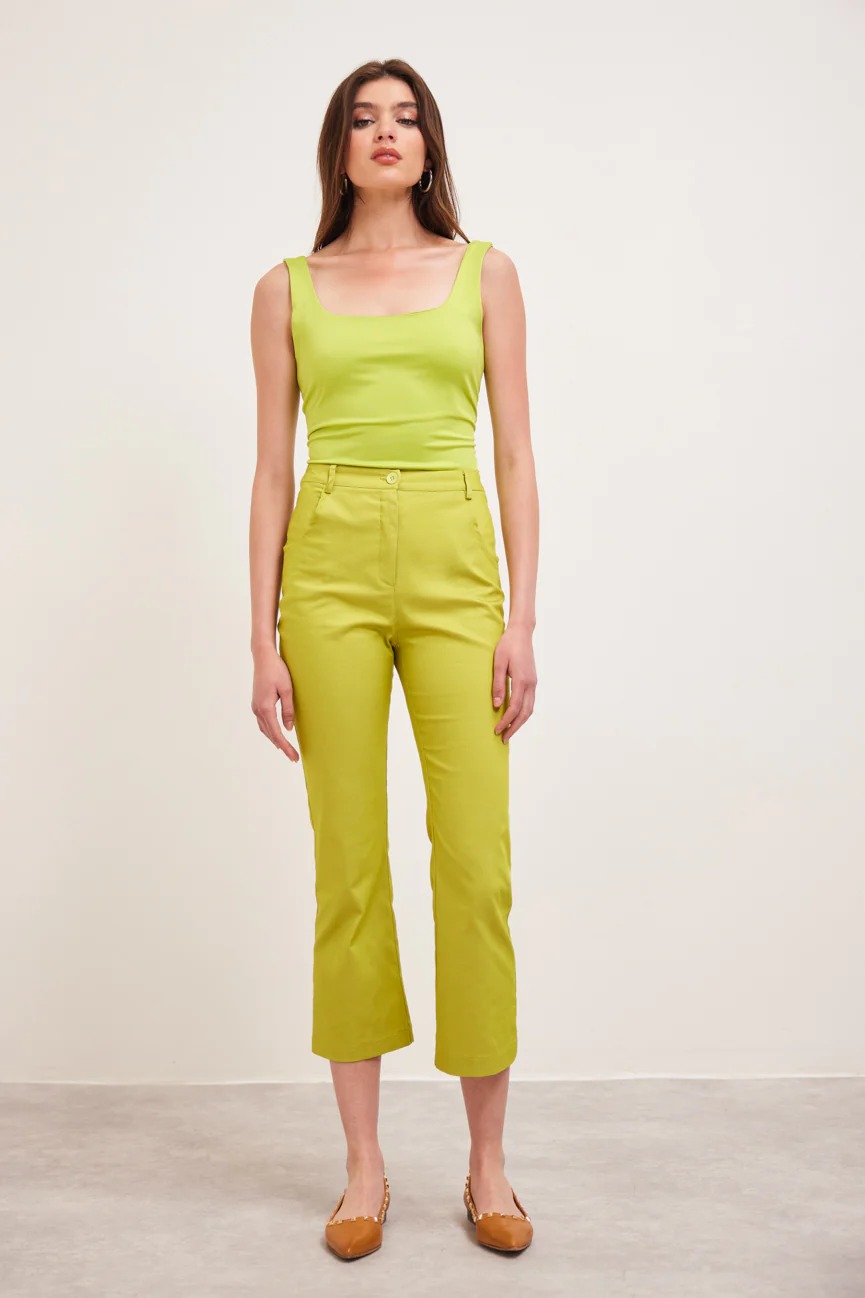 Παντελόνι cropped. Ελαστικό ύφασμα, βαμβακερή καπαρτίνα.