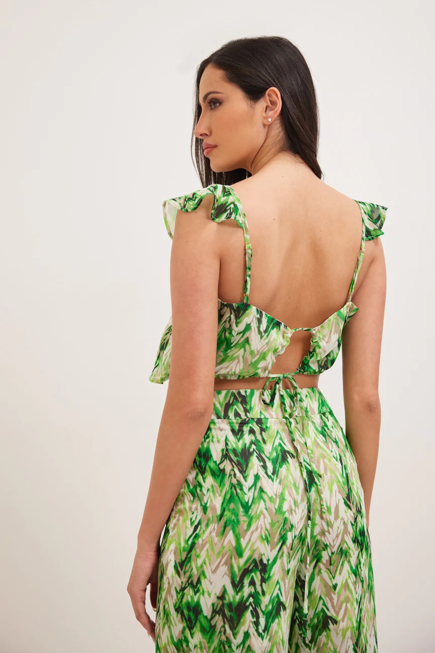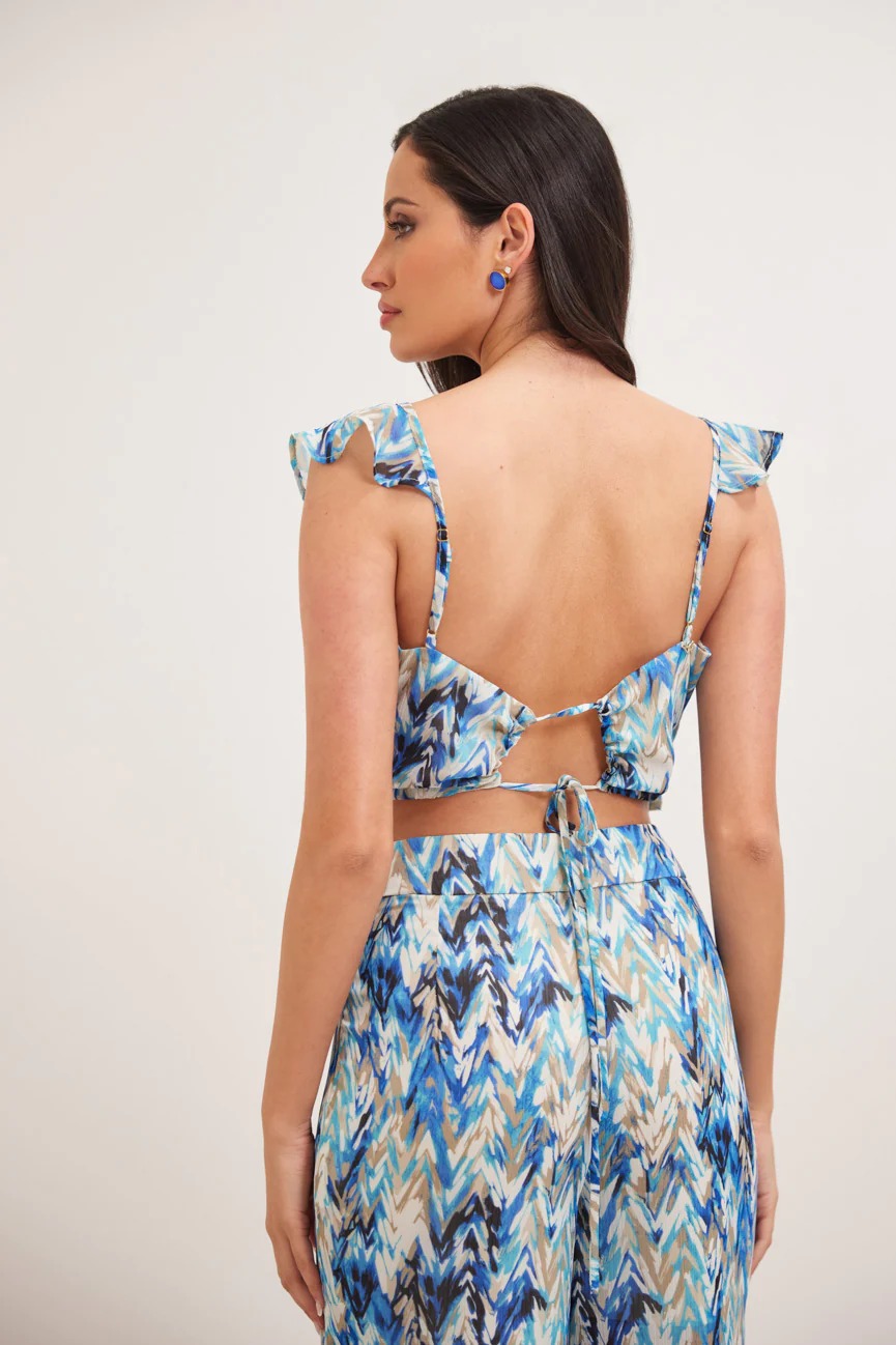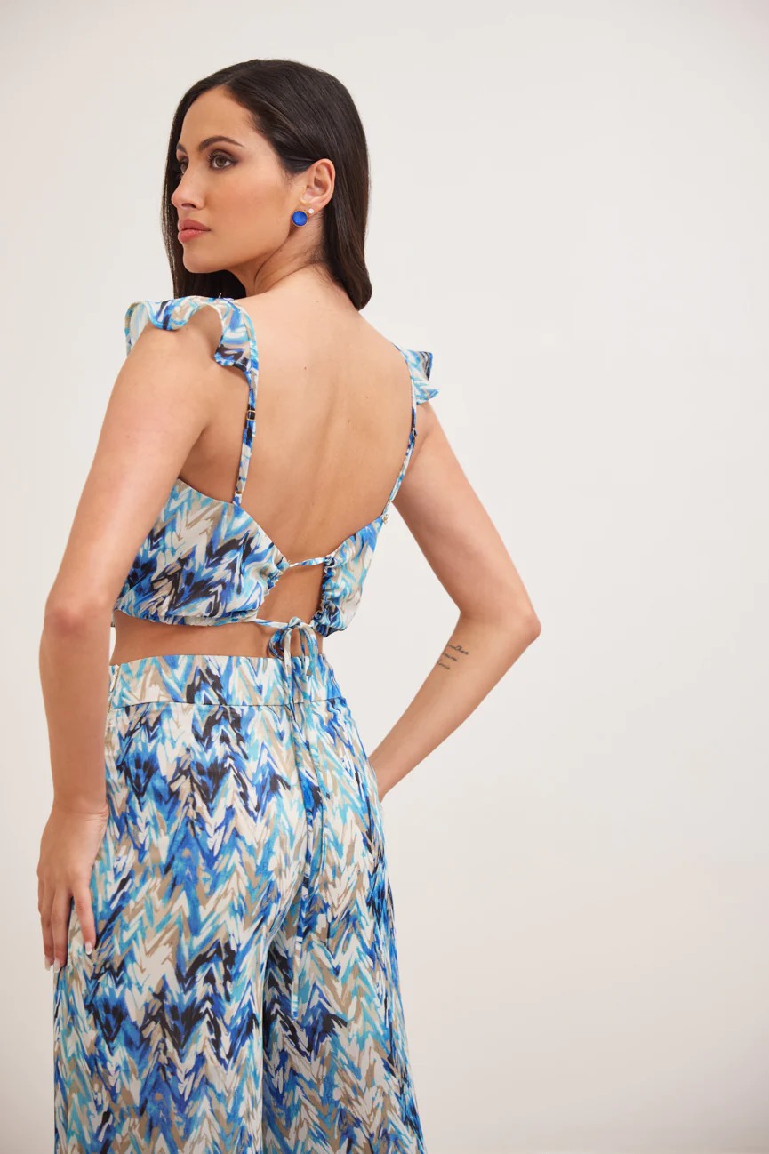 Μπλούζα εμπριμέ. Σταθερό ύφασμα. Ίσια γραμμή με άνετη κίνηση.