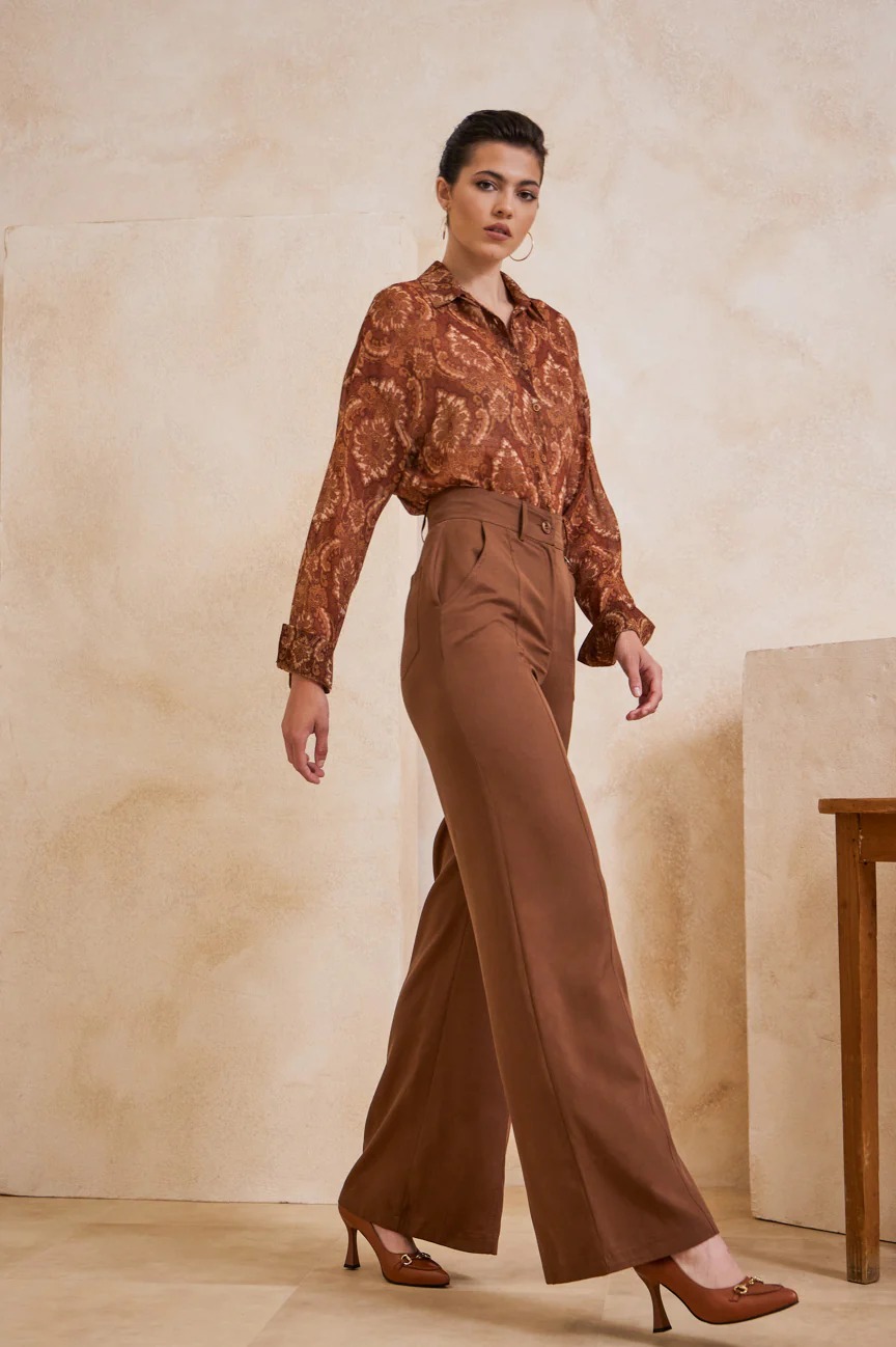 Παντελόνι ψηλόμεσο. Σταθερό ύφασμα με απαλή υφή.